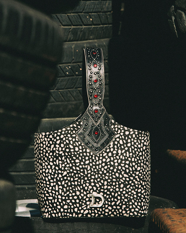 A little bit gritty and a little bit girly, the Cowboy Graffiti collection entertains edginess and eccentricity mixed with art. Grounded with bold blacks and retro pops of color, it falls somewhere between punk rock and the Pink Ladies.