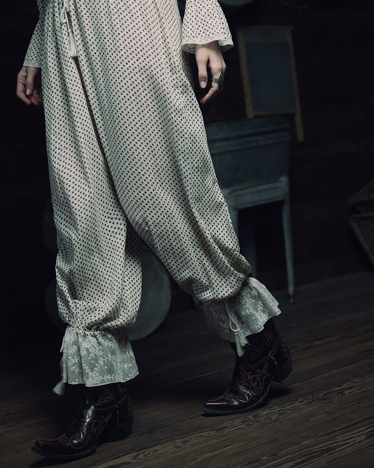Reminiscence meets runway in the Wash House collection. Inspired by the garments they used to play dress-up in from their Granny’s storage trunks, this collection romanticizes vintage fashion in a way that feels elevated yet authentically western.