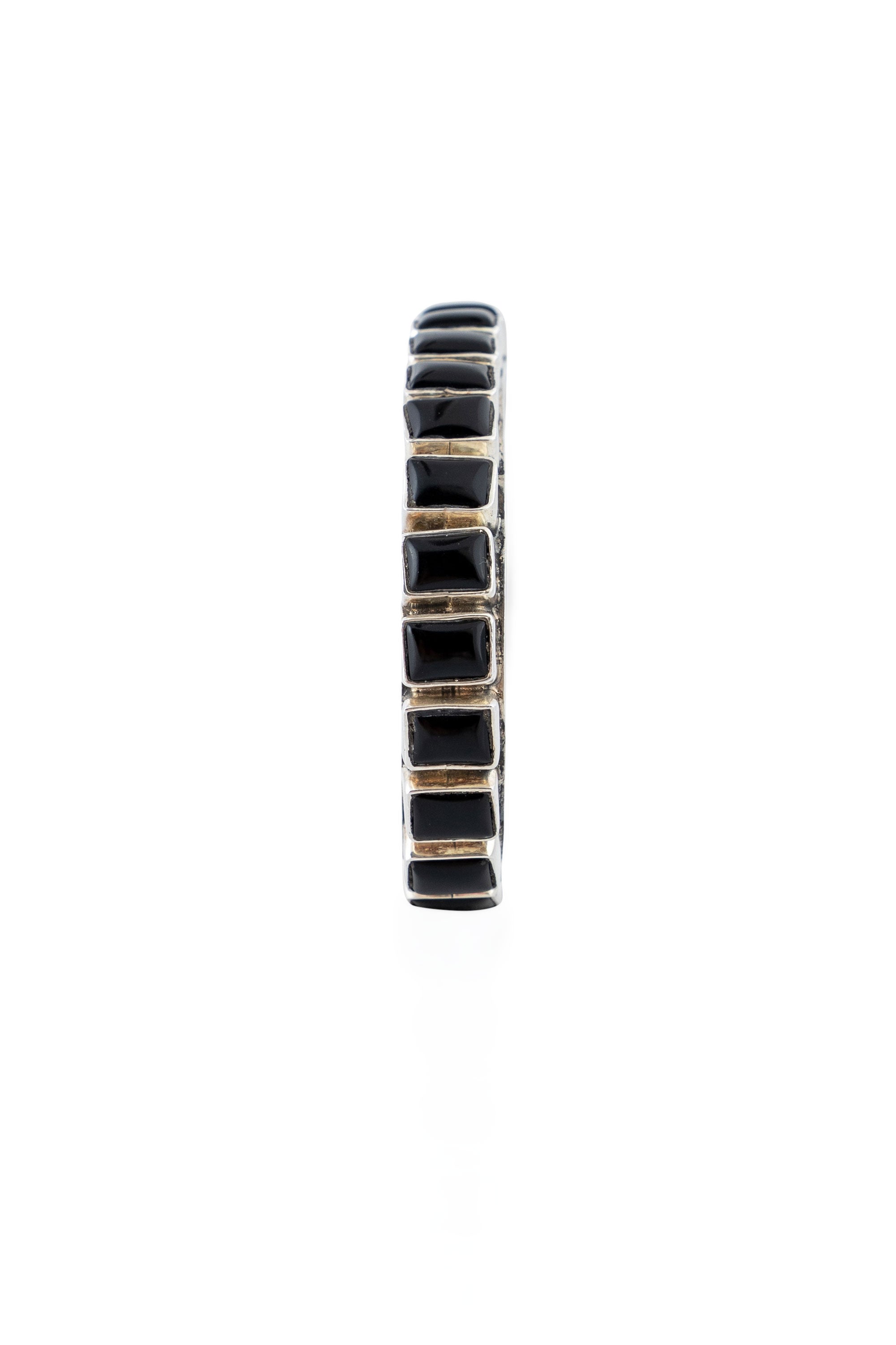 Crafted by renowned jewelry artisan Federico Jimenez, this beautiful cuff is a single row of square cabochons of polished onyx set in simple sterling silver bezels. The straight-edged, slim silhouette is perfect for incorporating into a stack.