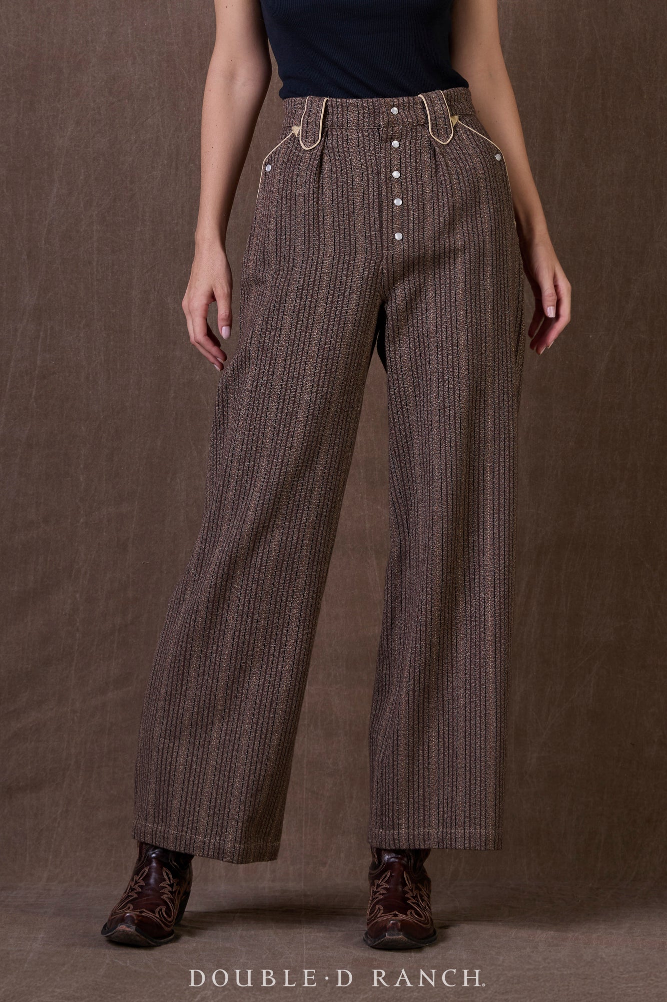 The wide-leg pant is everywhere you look, and we are absolutely here for it. This cool cotton pair is designed in a subtle pinstripe print, embellished with pearl snap accents and contrast piping that add just a touch of twang.