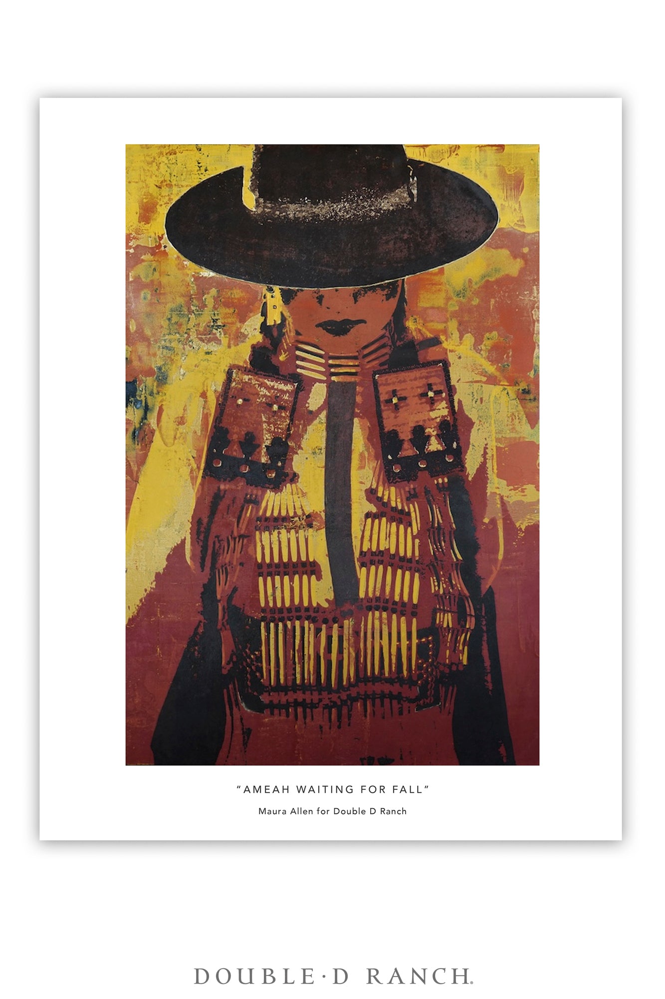 We had the opportunity and pleasure of collaborating with Maura on the 2025 Holiday Collection, incorporating some of her pieces into prints or transforming them into pieces all their own. This image was a commission specifically for this collaboration and is featured prominently on both a tee and one of the season’s statement jackets. Not only is it a beautifully poignant portrait, it also has a unique place in the Double D Ranch story – a multi-faceted win for your wall!