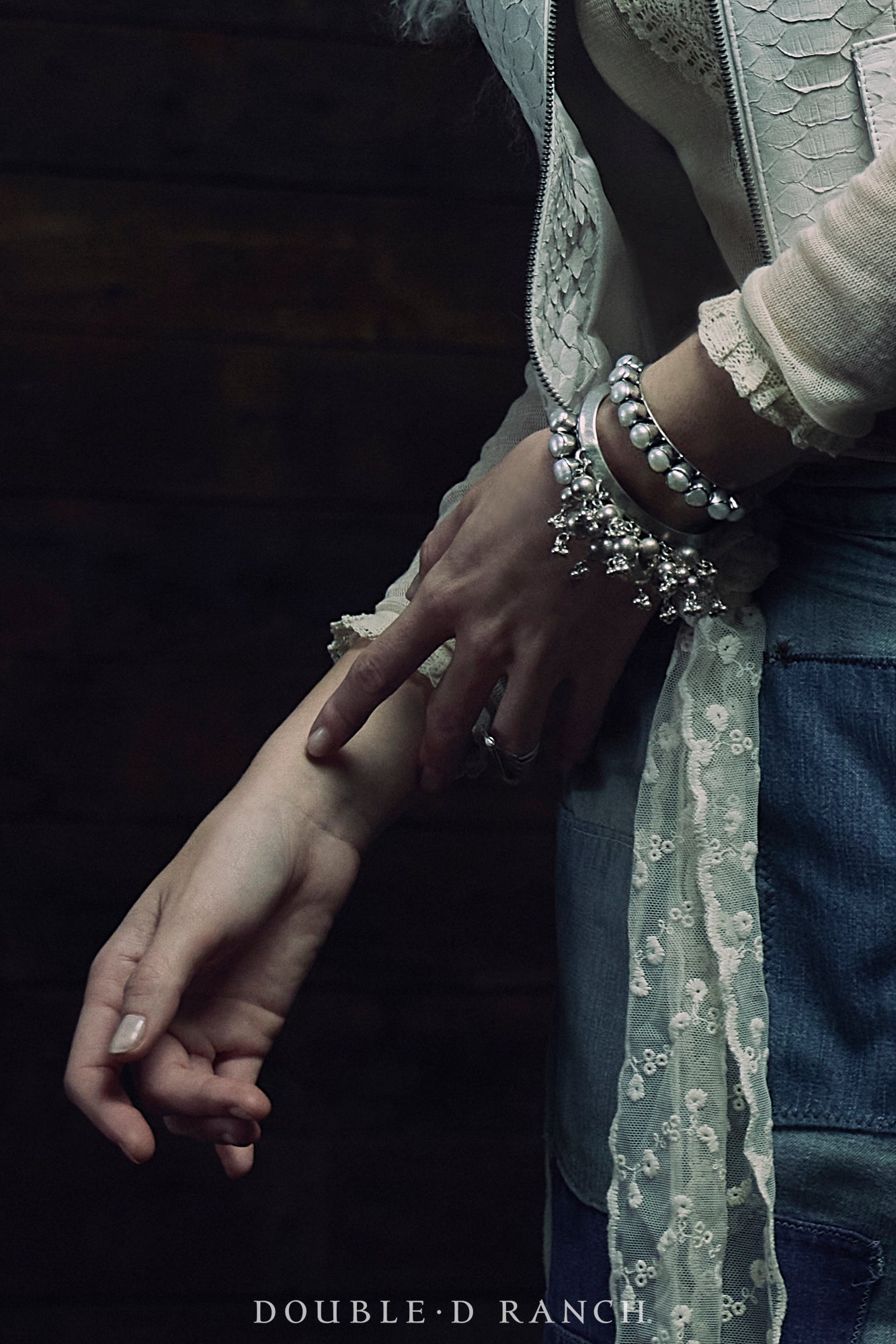 How fun is this cute contemporary creation? The sleek beauty is a singular shiny silver band adorned with dangling baubles of assorted sizes and arrangements of polished silver pearls. Sleek shiny style and fun movement!
