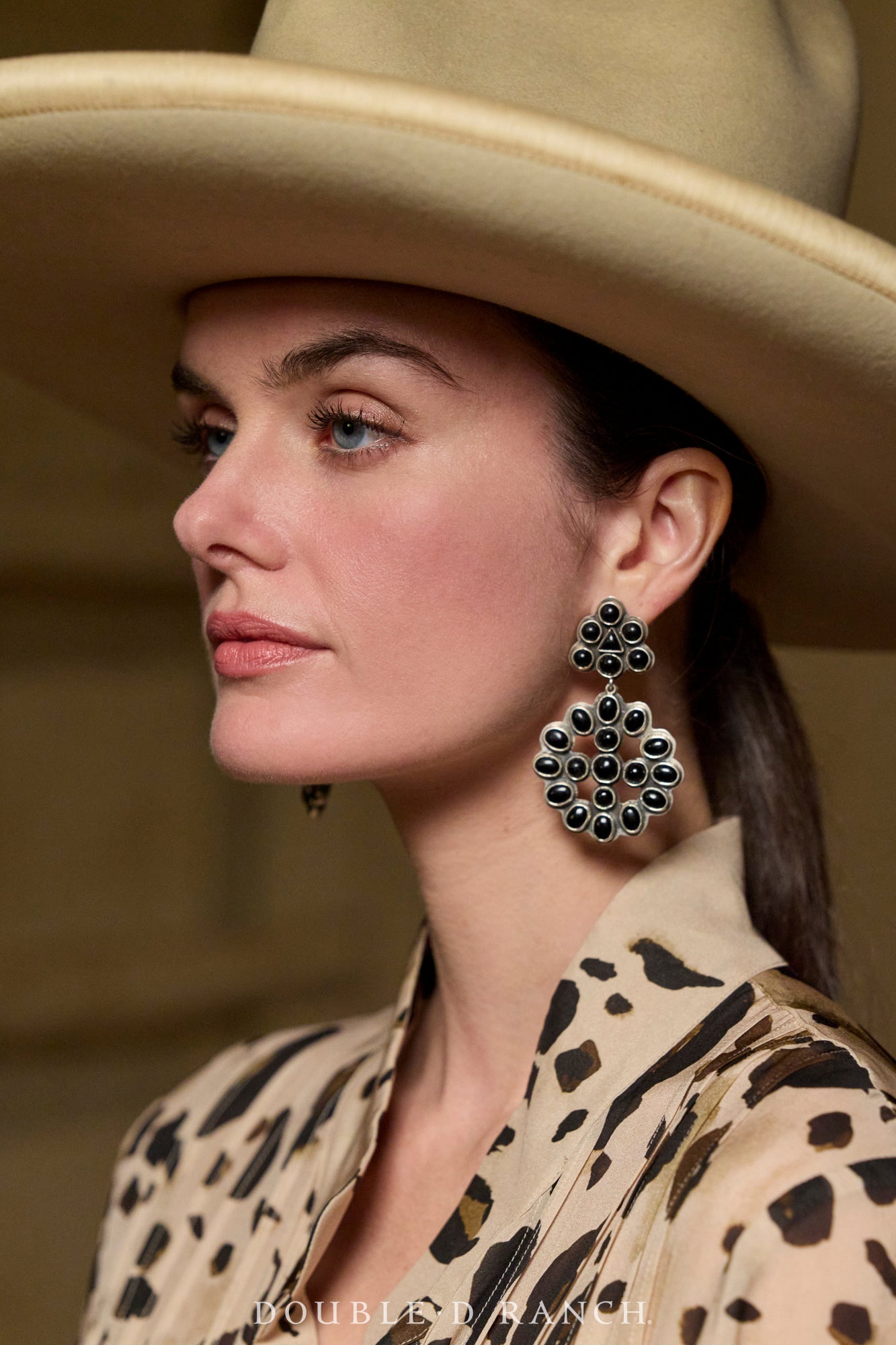 Collaborating contemporary artisan Federico Jimenez has added creative charisma to these post-style cluster earrings. Each one features a small creative cluster hinged to a larger round cluster crafted with bold onyx stones. Every piece comes together perfectly, creating a stylish finish for any outfit. Federico is known for southwestern cluster work, and that is evident in these bold beauties.