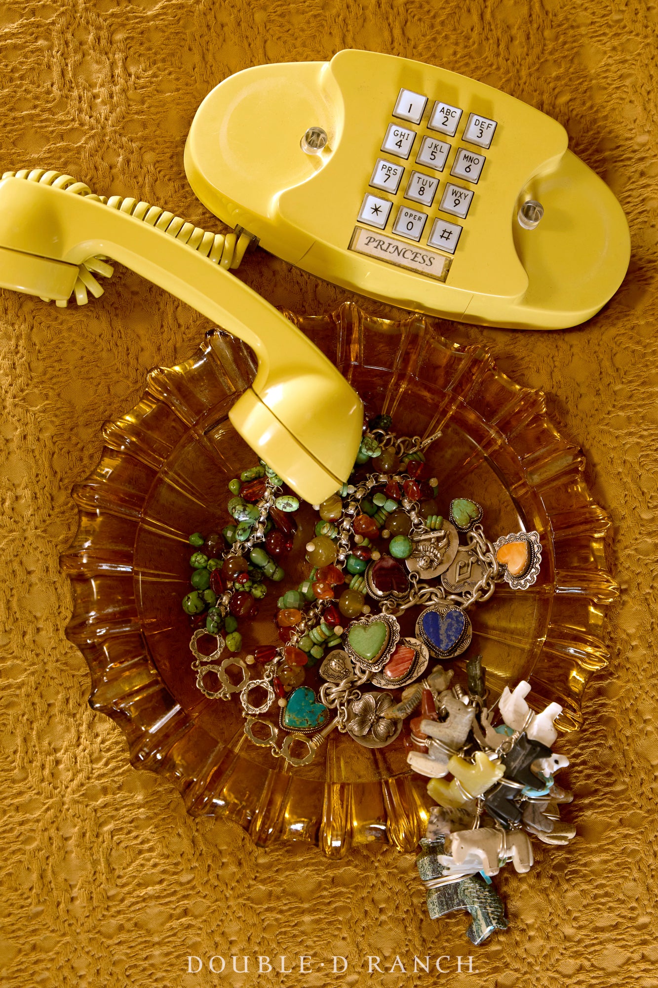 We dare you to wear this extraordinary contemporary creation by Federico Jimenez without getting a million comments and compliments on it! It’s a matching duo (one cuff and one ring), each adorned with several small carved fetishes of different animals in various stones – turquoise, agate, mother of pearl, catlinite, ironstone, and more. The craftsmanship is incredible, and of course, they have a statement style and dangling movement that’s impossible to ignore. An investment pair for the true collector with serious Southwestern style!