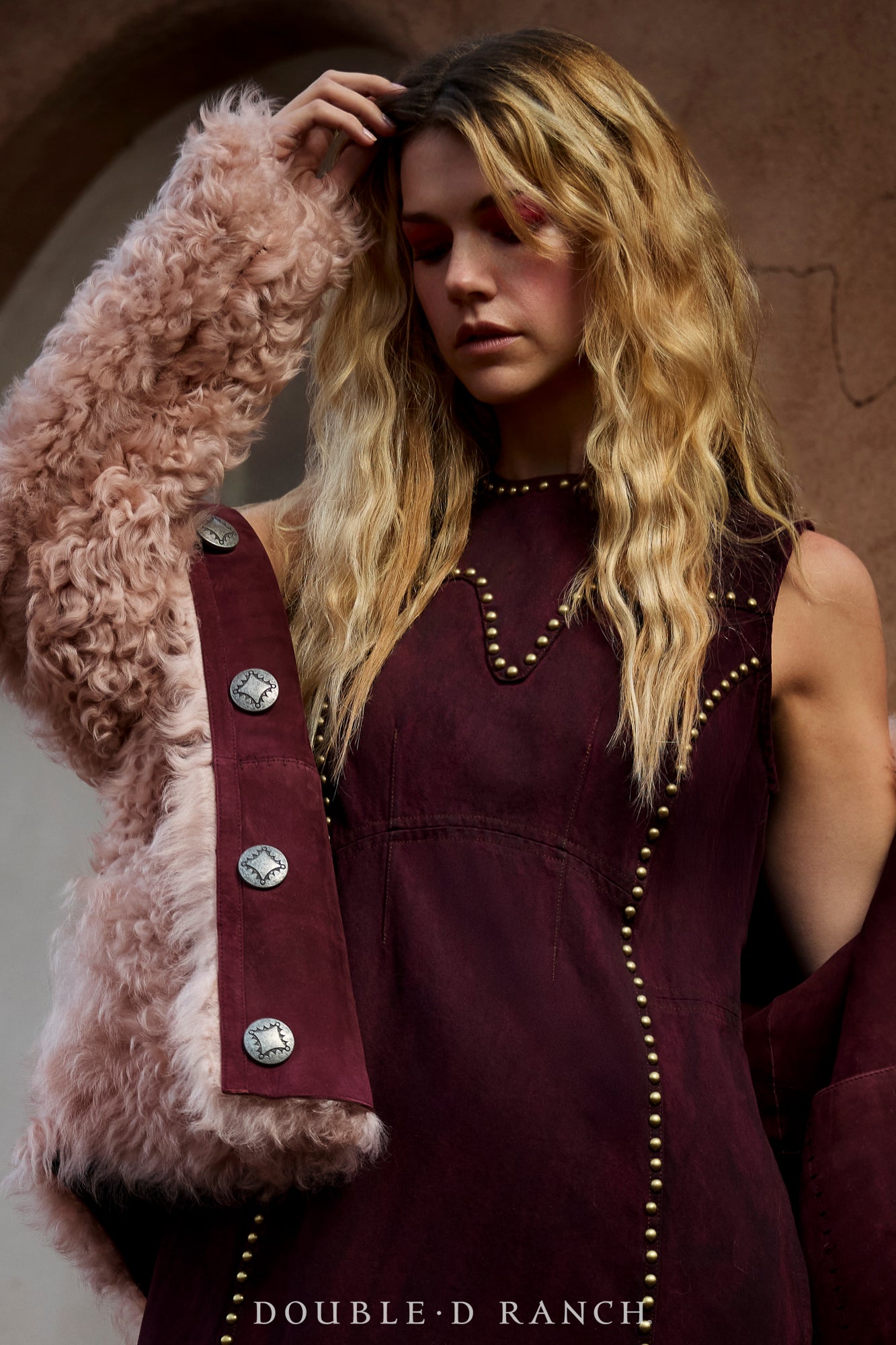 We are absolutely enamored with this dress. It’s a classic cotton denim, which makes it feel effortless enough for every day, but the irresistible oxblood hue elevates it to another level. It has a chic and simple sleeveless silhouette and the minimalist brass studding details add a sleek element of visual interest and a touch of Western twang.