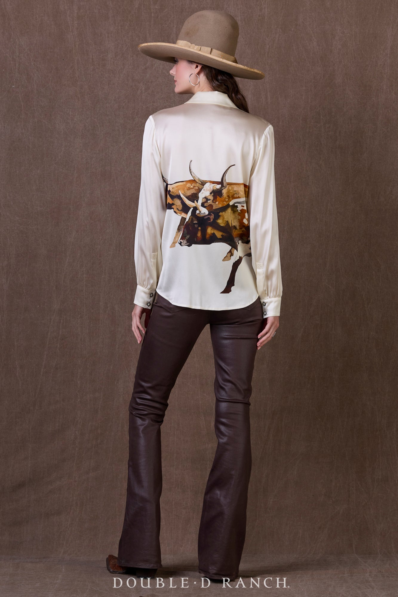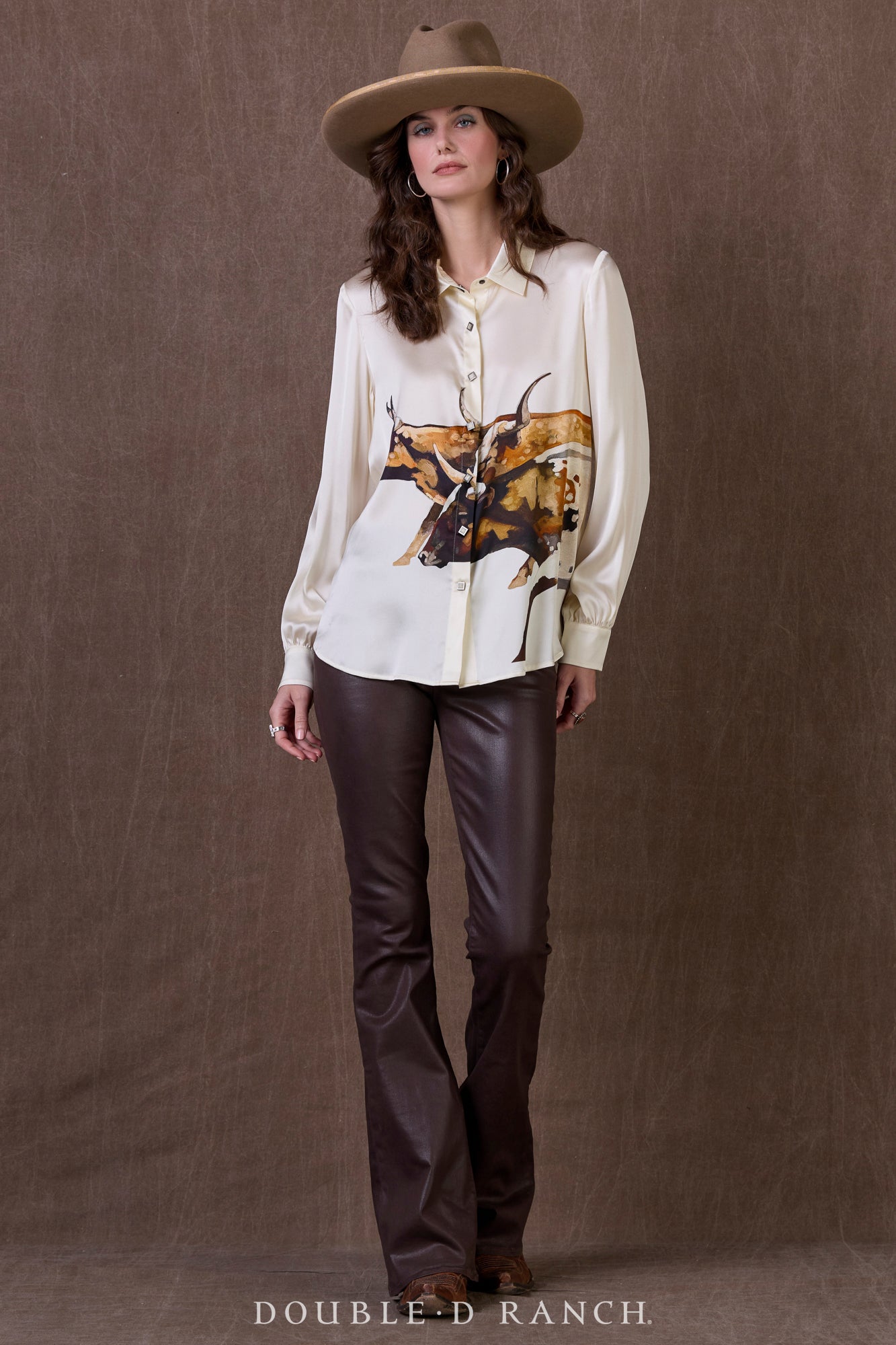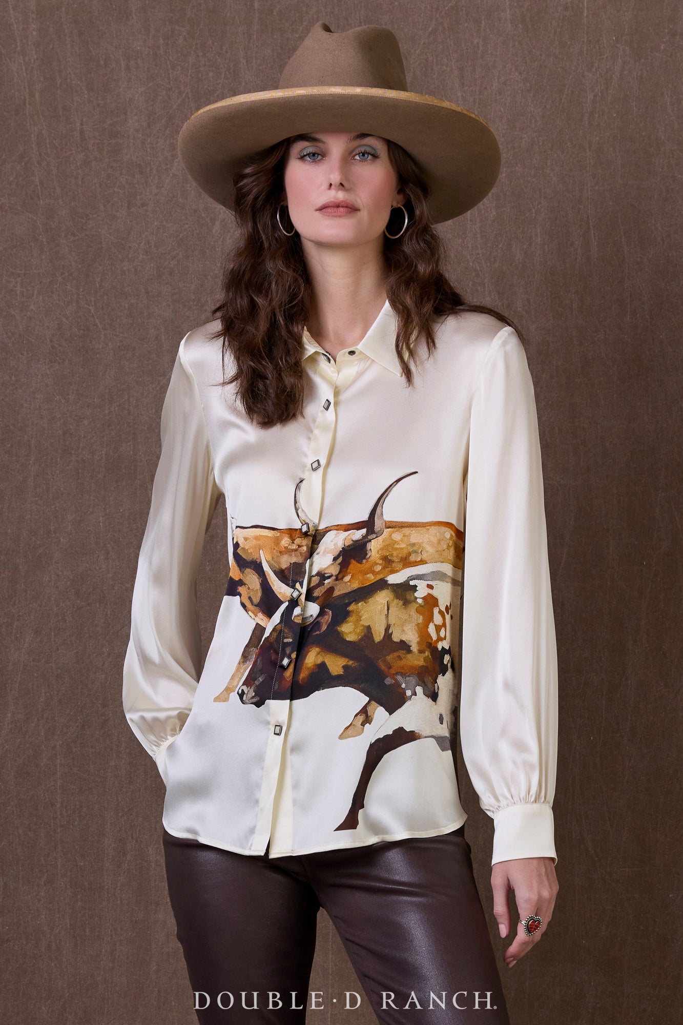 Whether you’re looking to get rigged up for the rodeo or gussied up for gameday at DKR Stadium, this top is a sleek way to pull off “cowgirl cool”. The silk blouse has a relaxed fit and slightly longer length that makes it easy to wear untucked or tucked, and we love it with anything from classic blue jeans to Bandit Pants. Hook’em.
