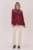 How much are you loving this look for gameday in Aggieland? This stunning maroon beauty was designed with y’all in mind! It’s boldly embellished with a pair of spurs at the shoulder and across the back, complemented with contrast white stitching and finished with some fabulous fringe.