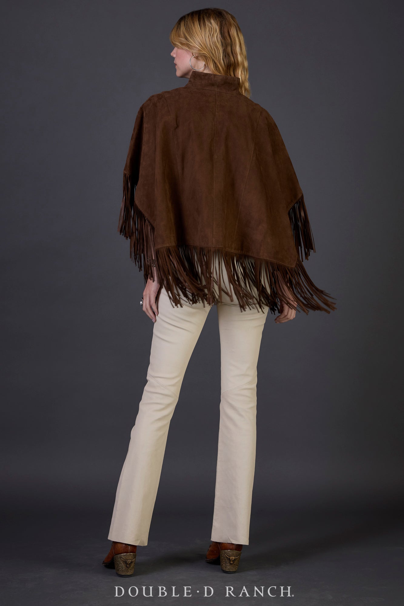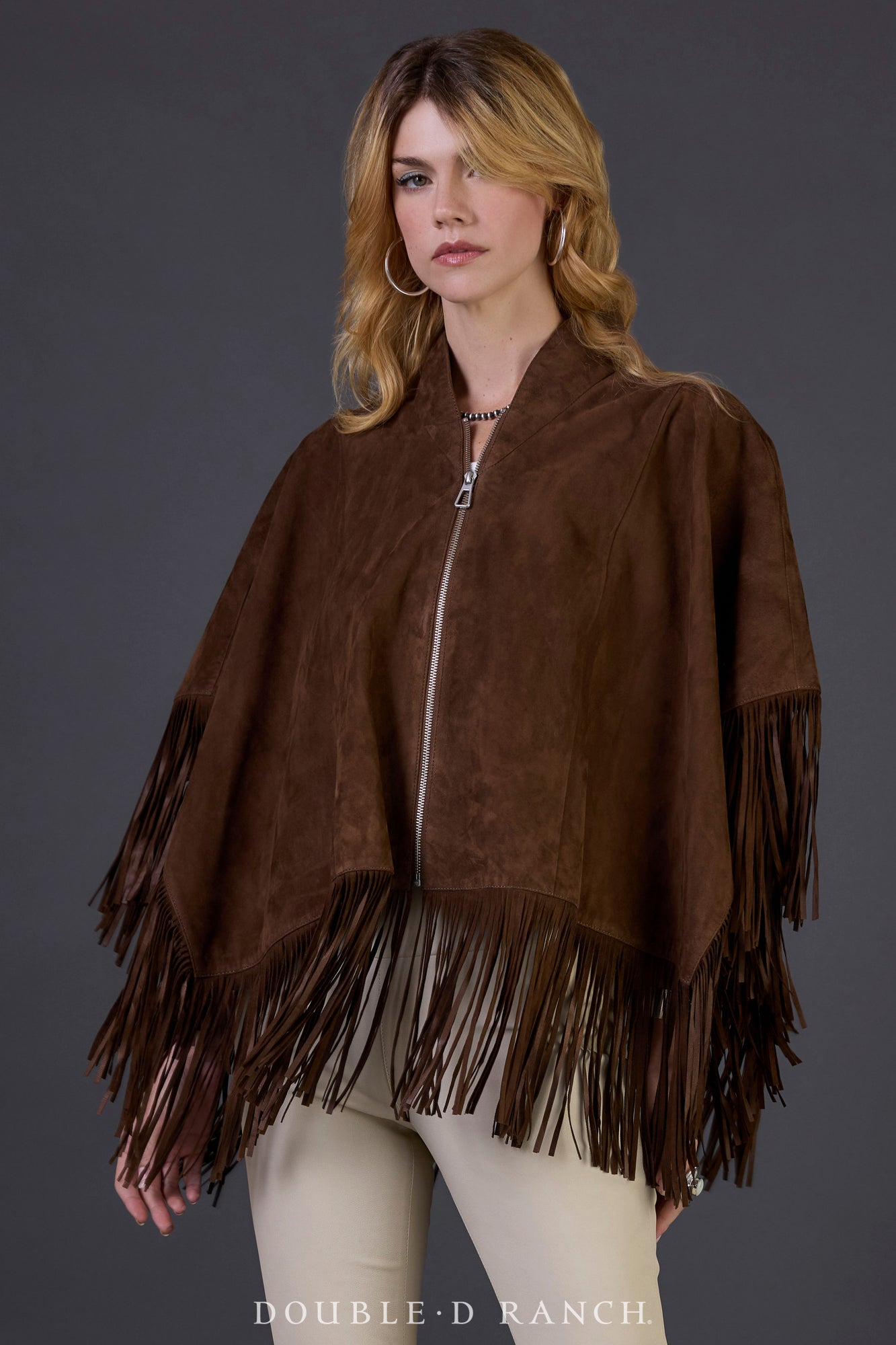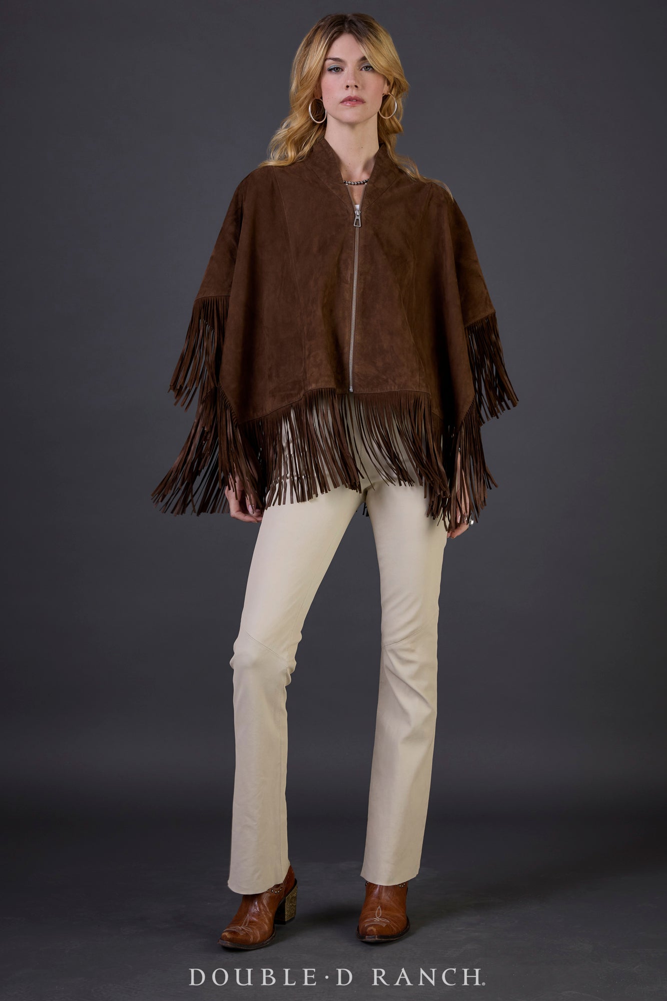 Capes are trending strong right now as an upscale alternative to your classic jacket or shawl. The effortless silhouette makes it easy to wear over almost anything, and the breezy flow of the fit allows it to serve as elegant outerwear when the temps don’t call for a full-on jacket. This luxurious lamb suede iteration boasts a sleek, squared silhouette with a full front zipper, and it’s framed in 306 degrees of long tonal fringe for a Western vibe and eye-catching movement.