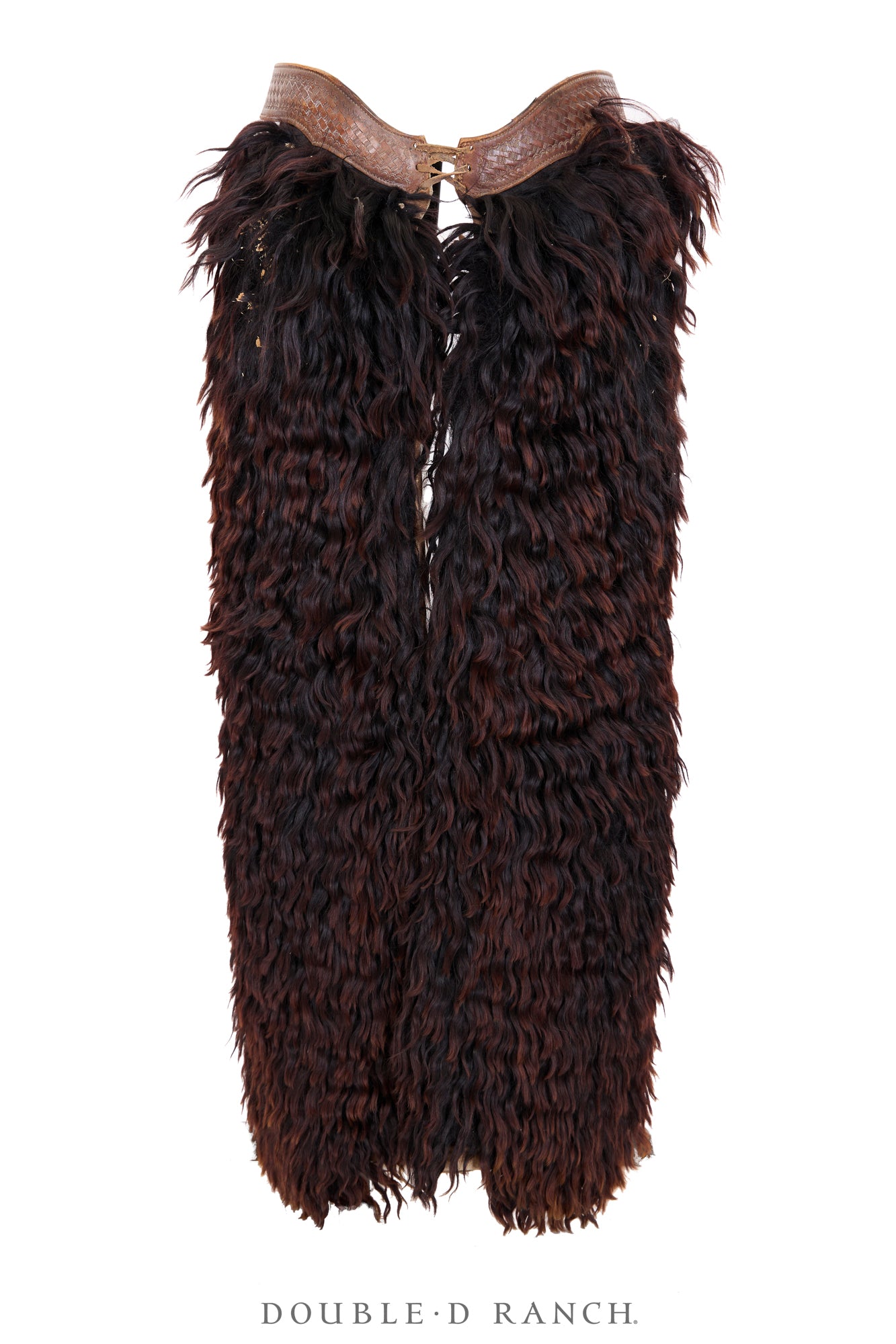 Y’all, these chaps are absolutely incredible. These turn-of-the-century chaps feature hand-tooled leather, classic commercial findings, and of course, their signature statement black angora wooly legs. They’re incredible, unique, and impossible to ignore – stunning finds for the true collector!
