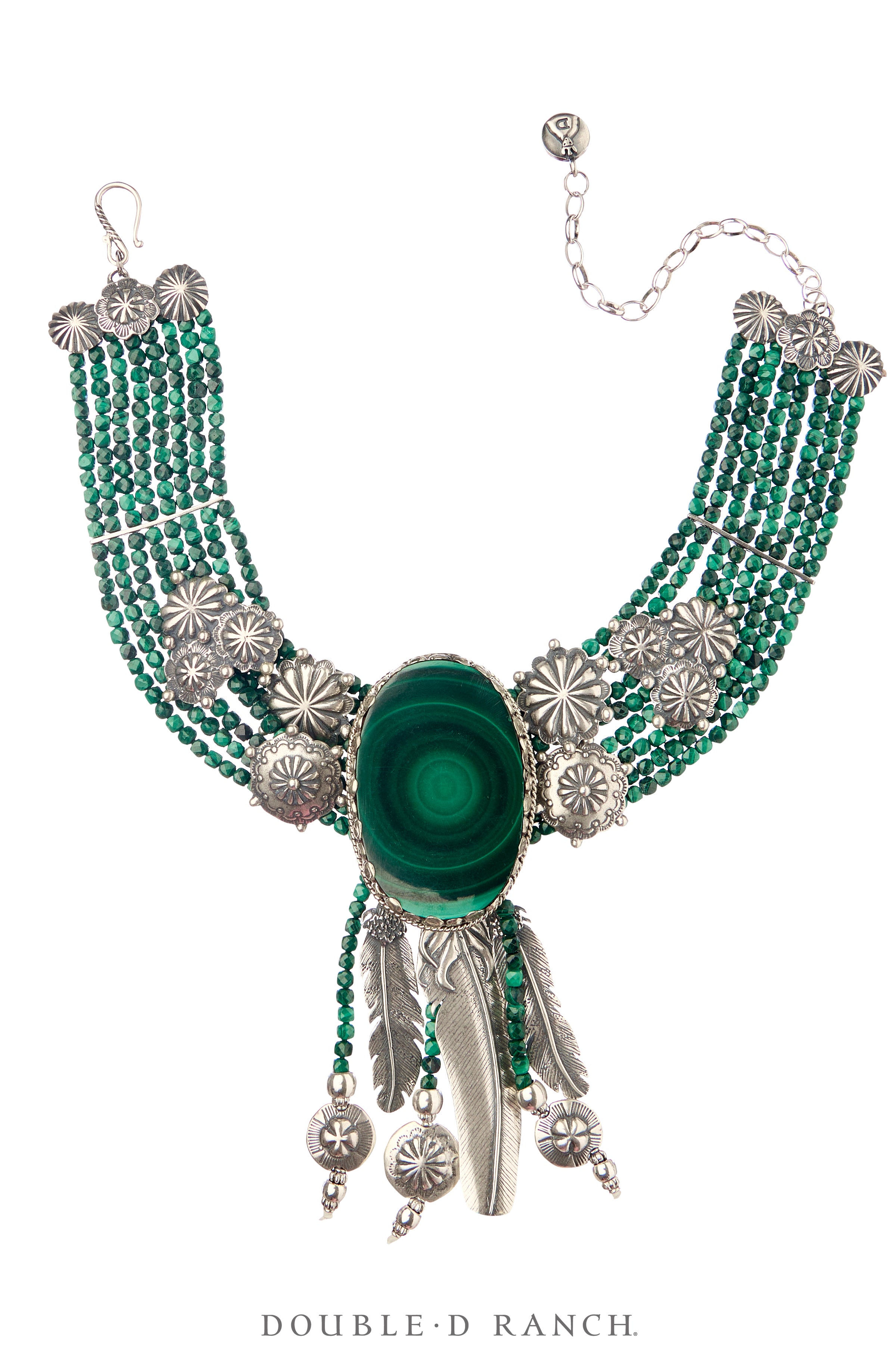 This magnificent Madlyn choker features 8 strands of stunning malachite beads adorned with classic concho charms and a centerpiece slab of gorgeous green agate. It’s one of the most memorable Mummy’s Bundles we’ve ever seen and it’s certain to be highly coveted – your girlfriends will be green with envy!