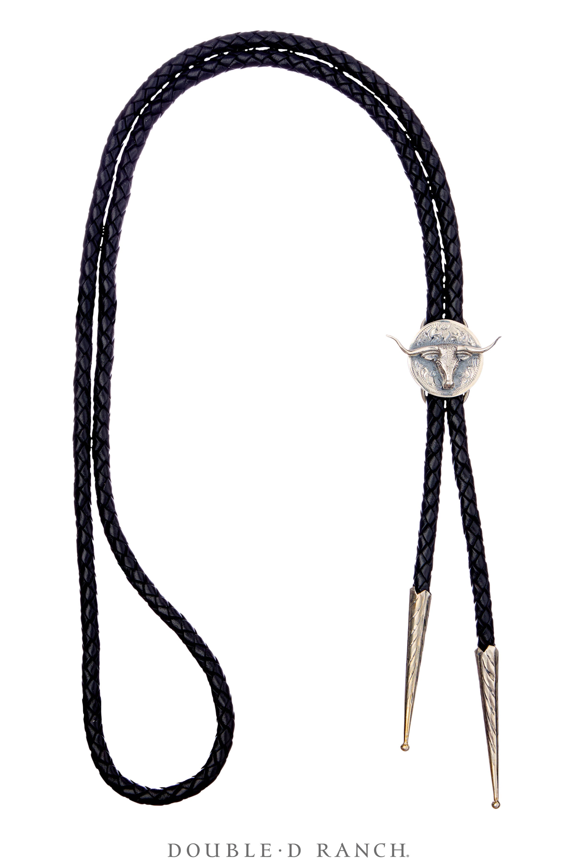 Vogt Silversmiths are renowned and revered for their exquisite handmade silver creations, from buckles to bolos and beyond. Their work is characterized by intricate details, dimensional elements, and traditional Western aesthetic. This stunning statement bolo showcases all their signatures, boasting a dimensional depiction of a longhorn against an ornate silver slide. A striking piece for a guy or gal!