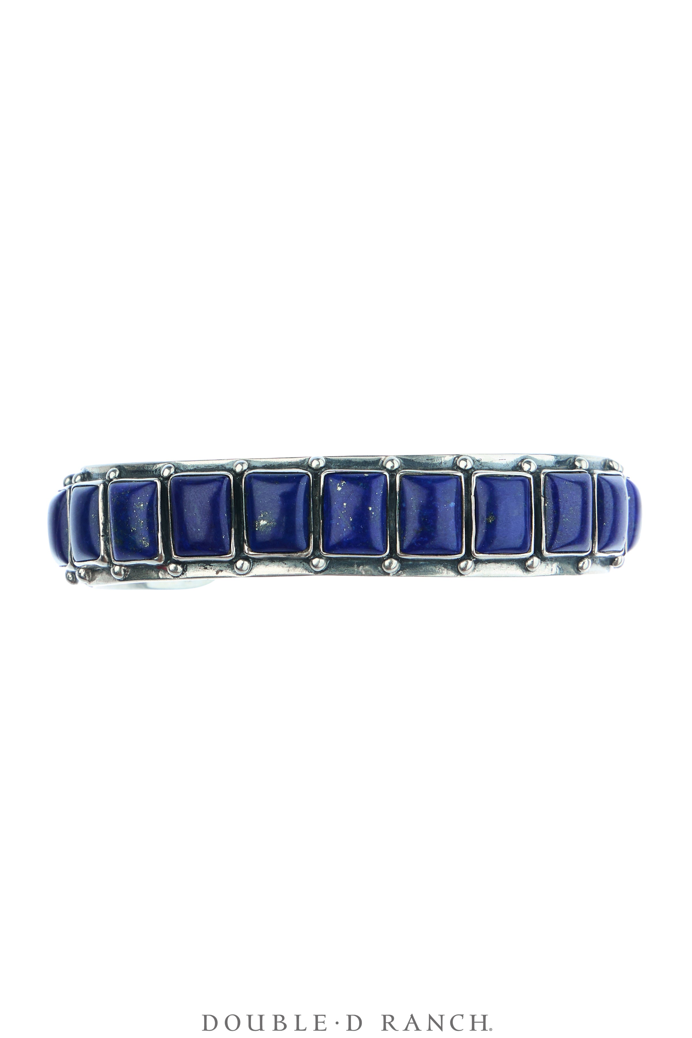 Crafted by renowned jewelry artisan Federico Jimenez, this beautiful cuff is a single row of cabochons of polished lapis set in simple sterling silver bezels. The straight-edged, slim silhouette is perfect for incorporating into a stack.