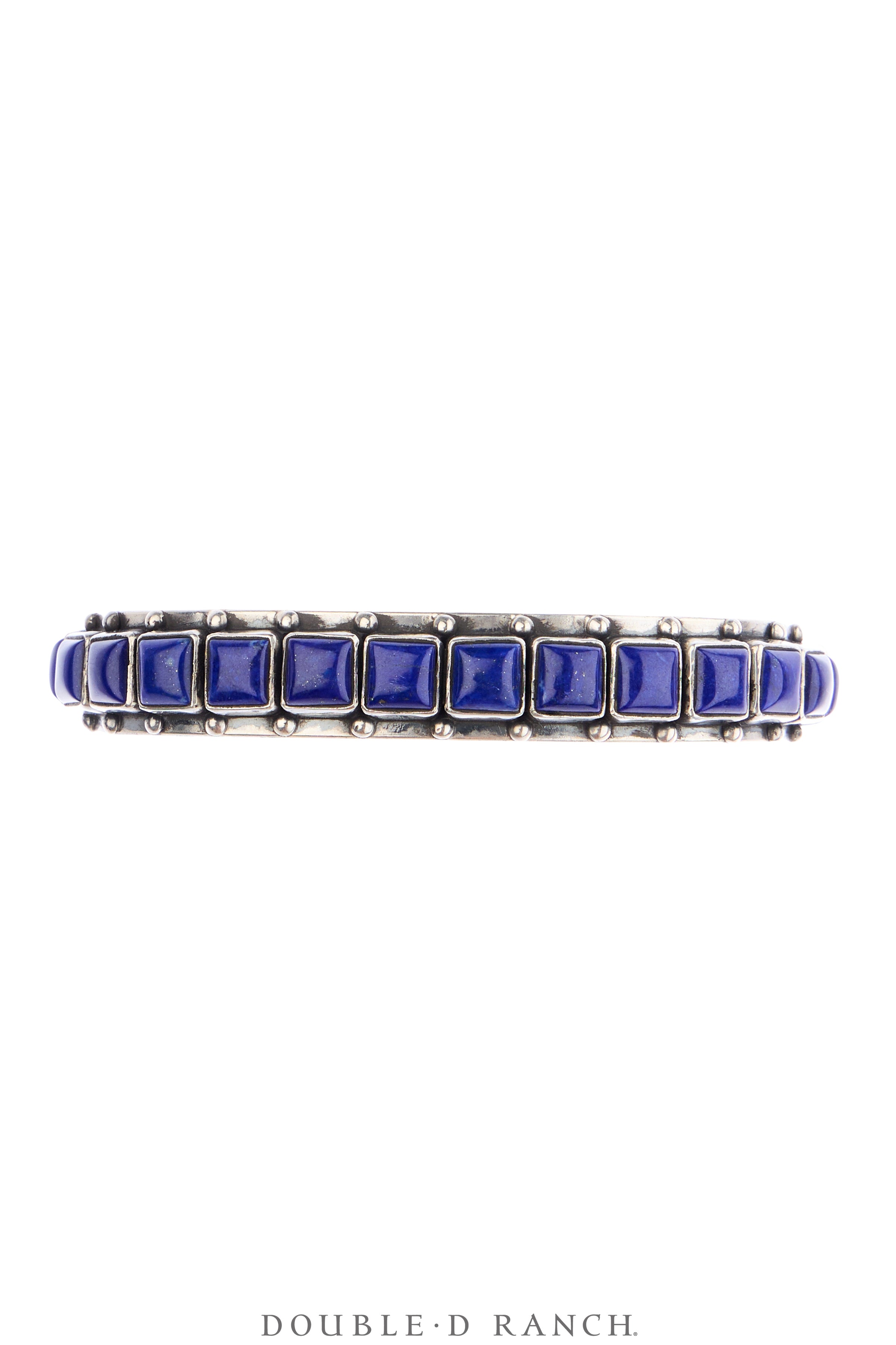 Crafted by renowned jewelry artisan Federico Jimenez, this beautiful cuff is a single row of cabochons of polished lapis set in simple sterling silver bezels. The straight-edged, slim silhouette is perfect for incorporating into a stack.