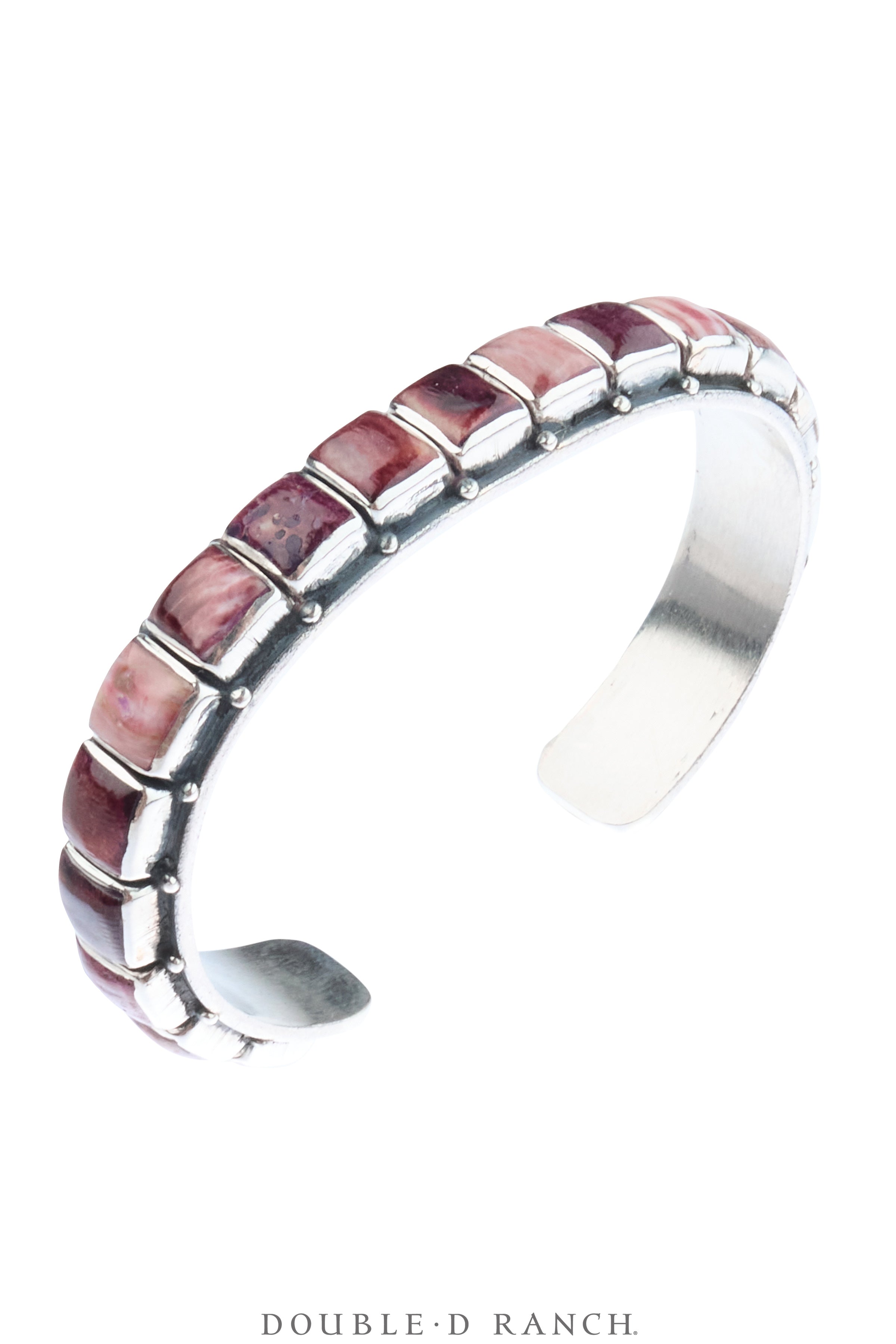 Crafted by renowned jewelry artisan Federico Jimenez, this beautiful cuff is a single row of cabochons of polished purple spiny oyster set in simple sterling silver bezels. The straight-edged, slim silhouette is perfect for incorporating into a stack.