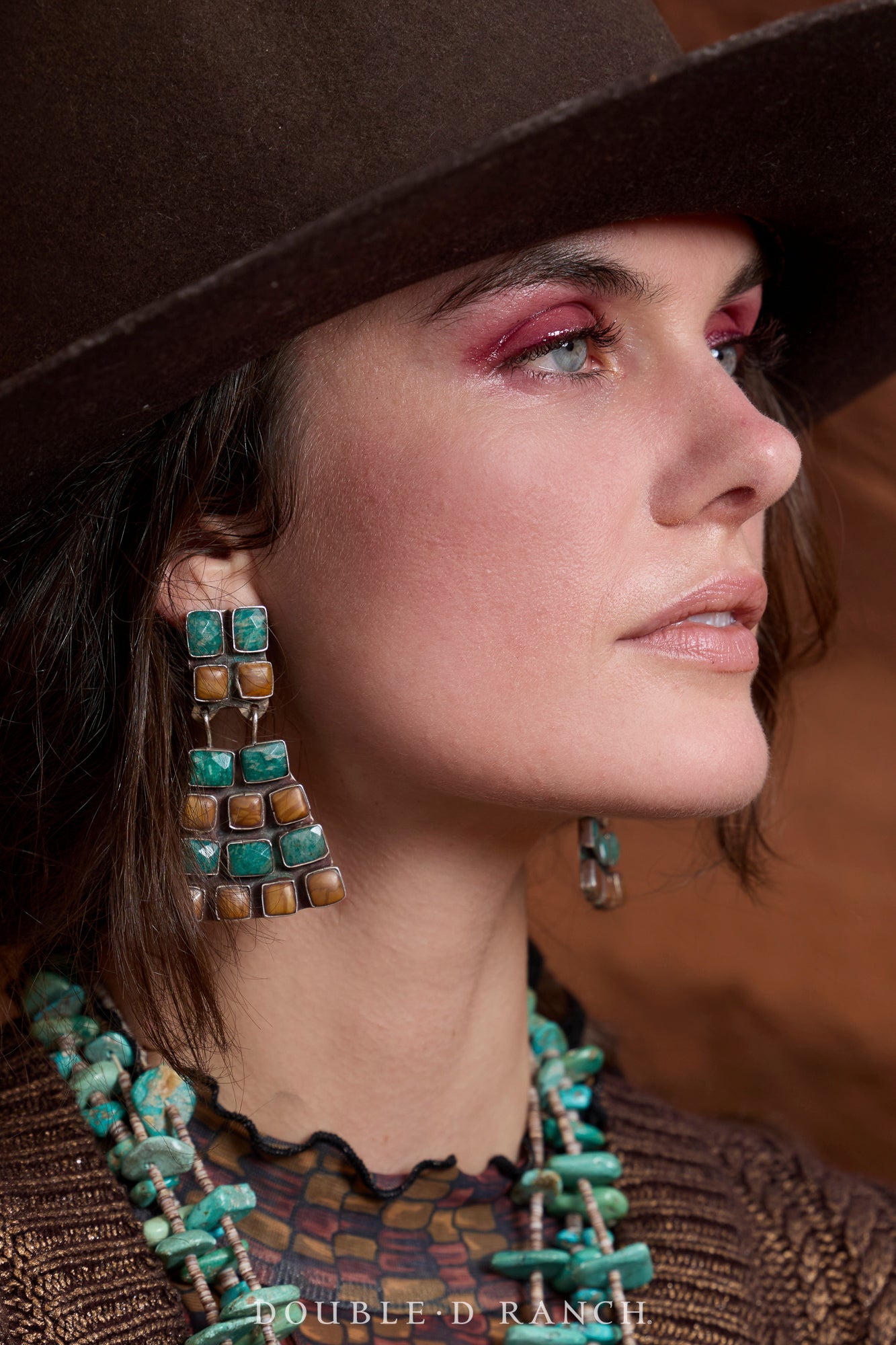 He is known for his original stone sets and one of a kind jewelry and is famous for perfecting the featherweight, Southwest Chandelier earring.