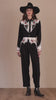 Traditional twang is getting a modern makeover with this chic two-toned pant. The crisp black and white is complemented by colorful florals and elevated by details like multi-layered piping trim and classic cuffed hem.
