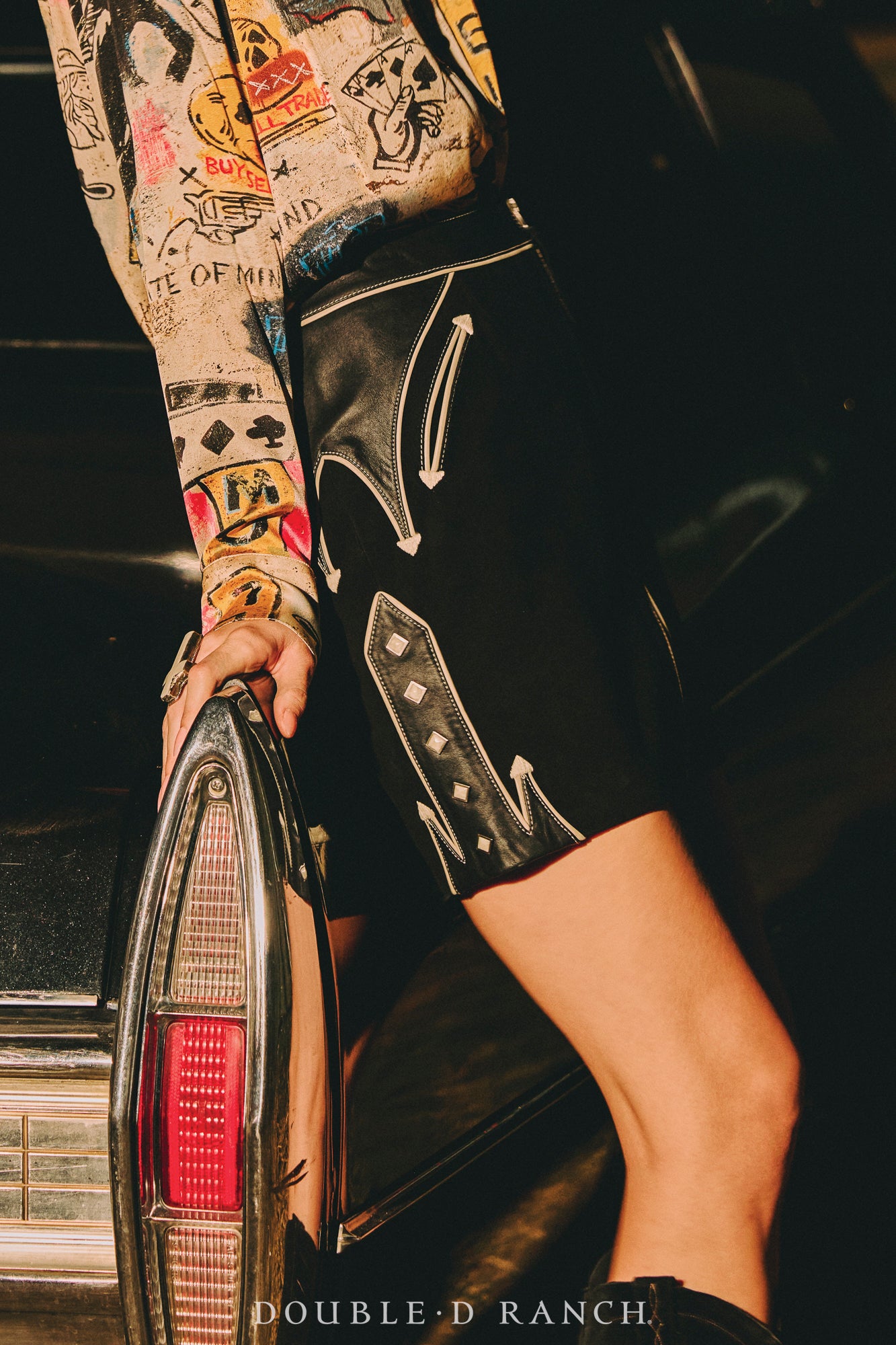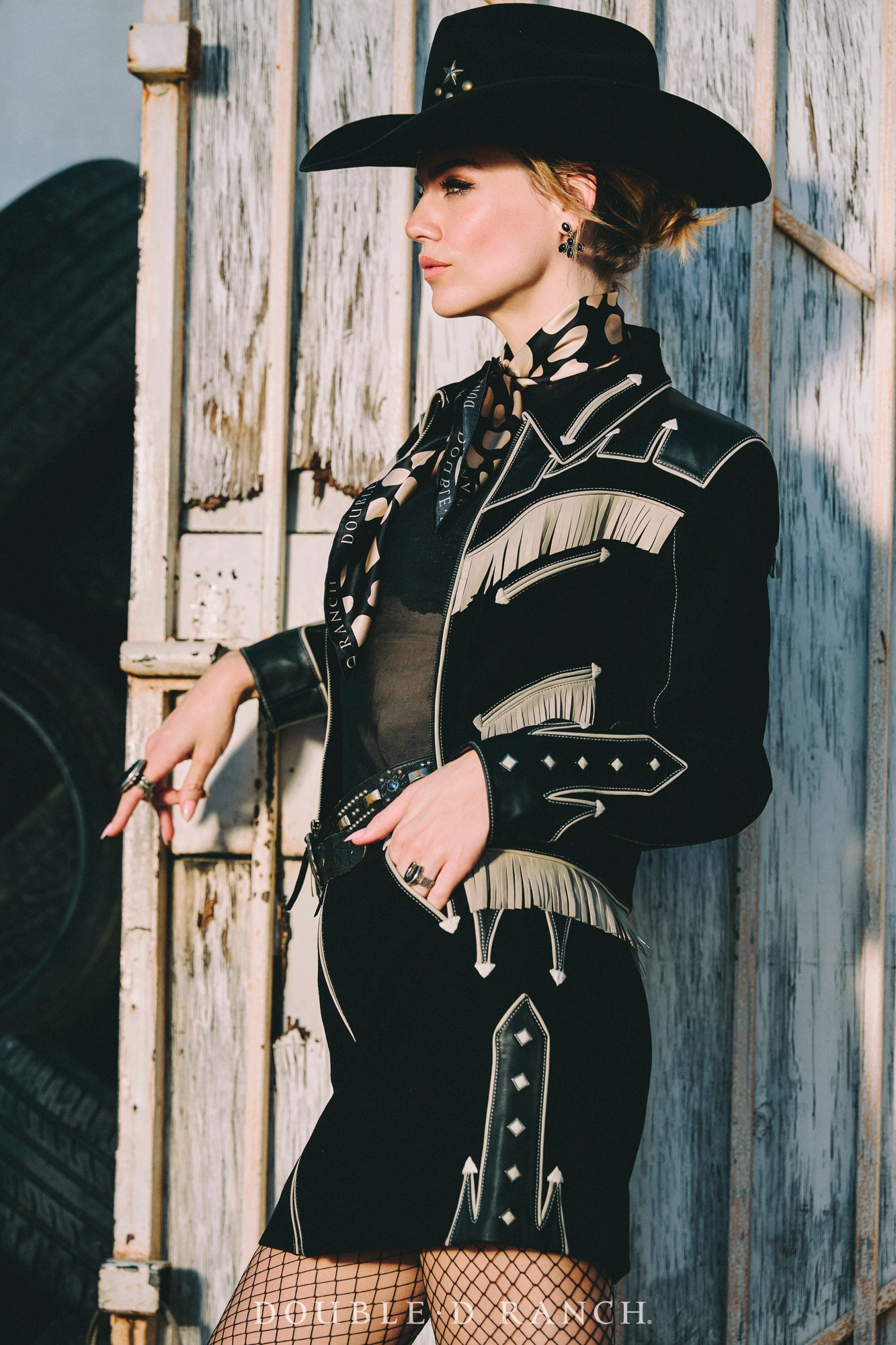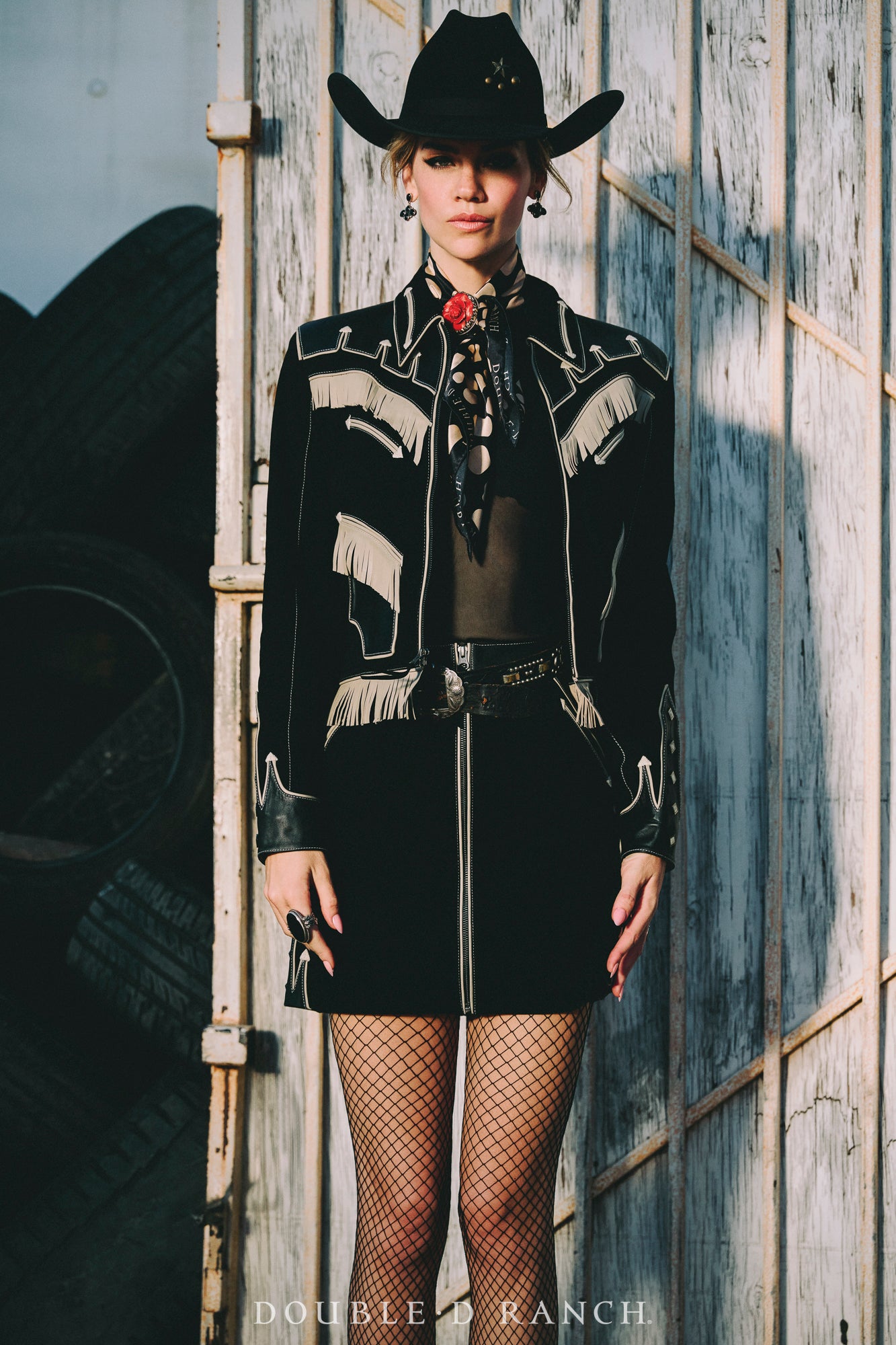 This skirt is the perfect piece to add just the right touch of Western flair to your ‘fit. The sleek straight-line silhouette is given an element of interest with the two-tone texture of the goat suede, complemented by contrast piping and Western welts and a full-length front zipper for a little edge.