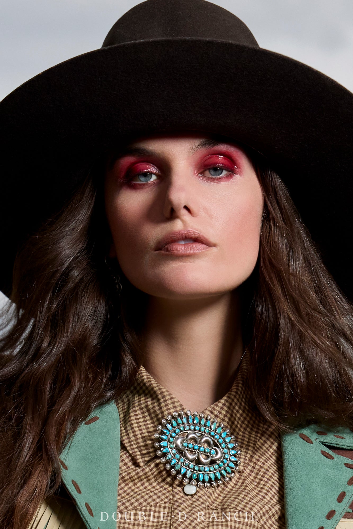 This beautiful vintage 50’s pin is a round openwork cluster design featuring a combination of petit point and irregular snake eye turquoise stones each set in a serrated bezel. Accenting the stones is a variety of silverwork including repousse semi-circles, sterling silver drops, and twist wire details. Large enough to make a statement, but not too large to be versatile -- perfect for pinning on your scarf or bag!
