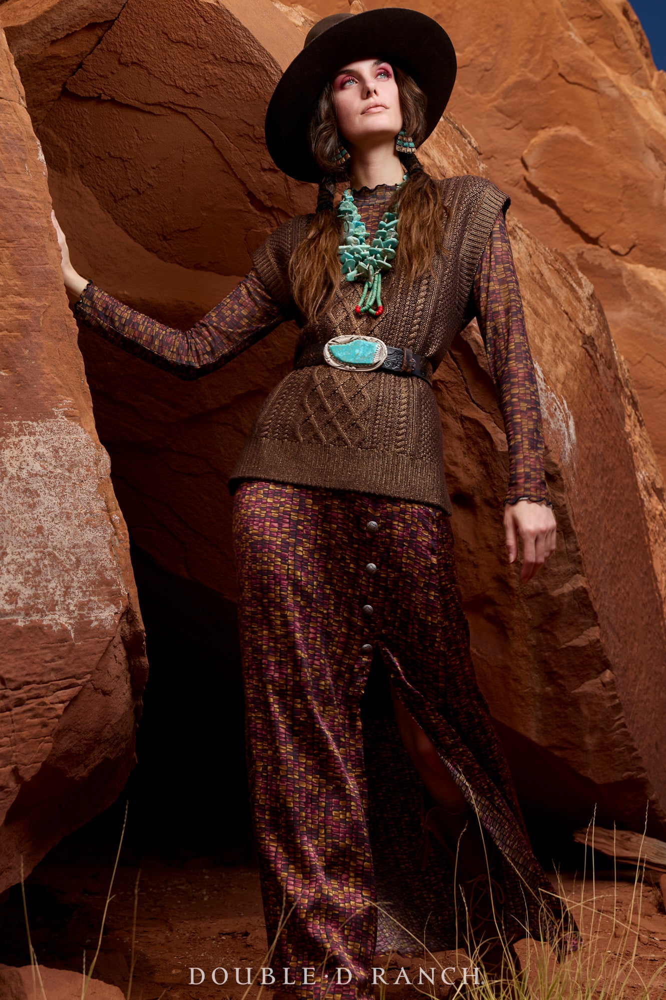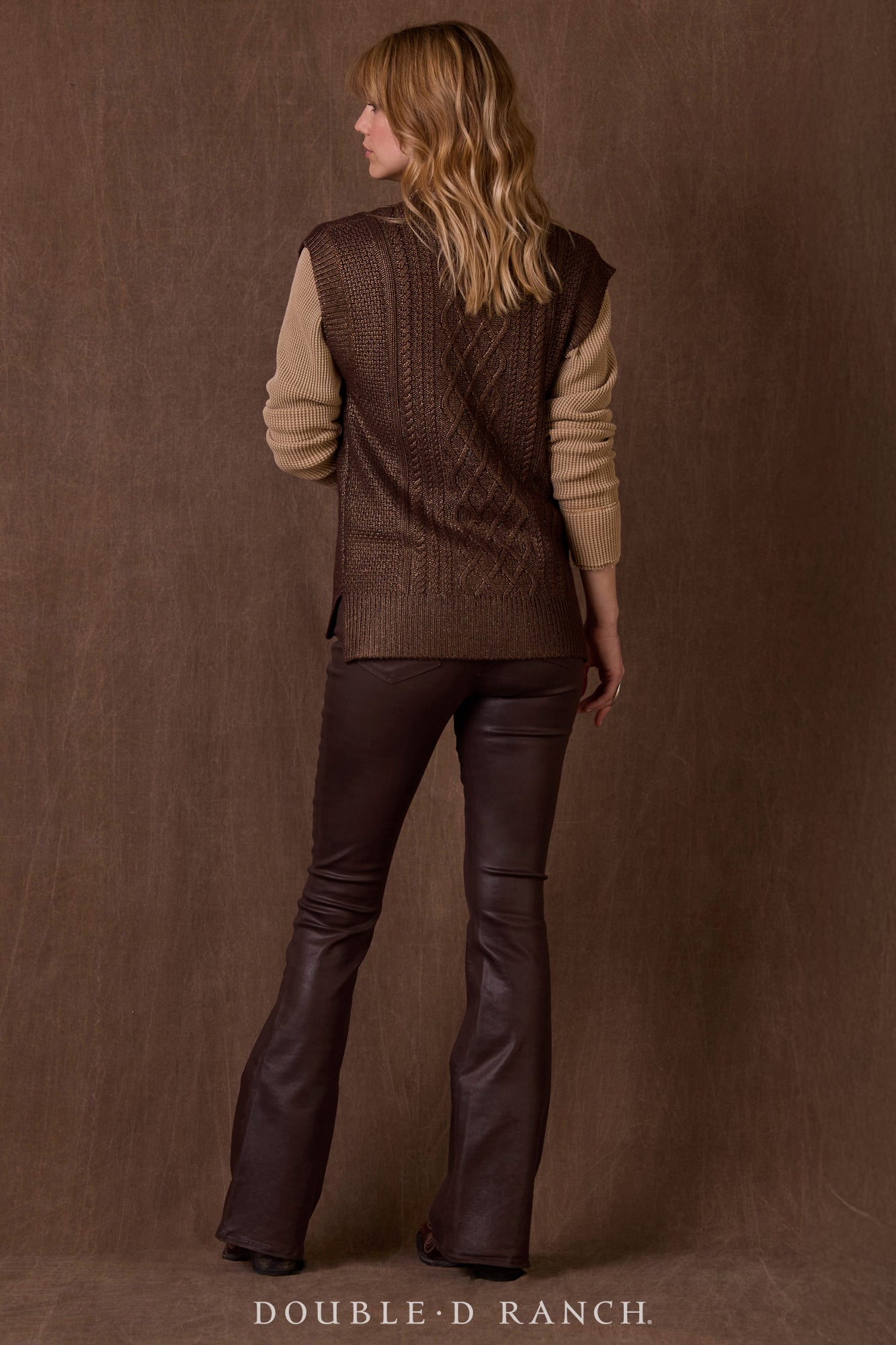 Y’all, photos hardly do this beautiful garment justice. We designed it to have all the classic appeal of a cable-knit sweater vest, but with an elevated aesthetic – cue the chic drop shoulder and hip length silhouette – and an unforgettable element of shimmer that is essentially bronze but can bring out hints of berry and burgundy. It’s truly unique and exquisite.