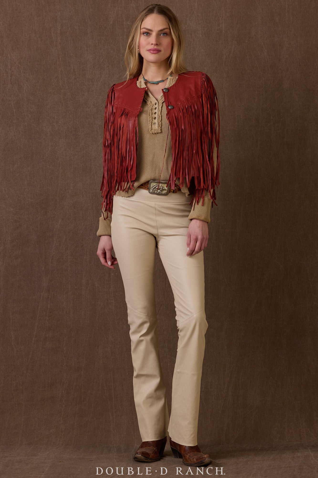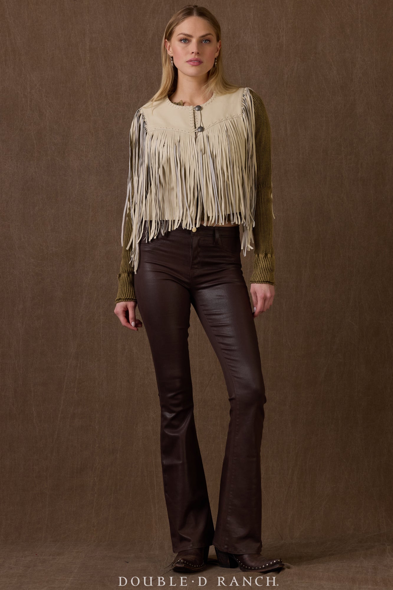 This sheepskin statement-maker has proven it has staying power, over and over again. The straight-line silhouette features double concho buttons at the neck and tonal leather lacing details, but it’s the bold hues and full-length fringe that are going to have you turning heads and dropping jaws! WARNING: The colors just keep getting better and better, you may develop a Sonora hoarding habit!