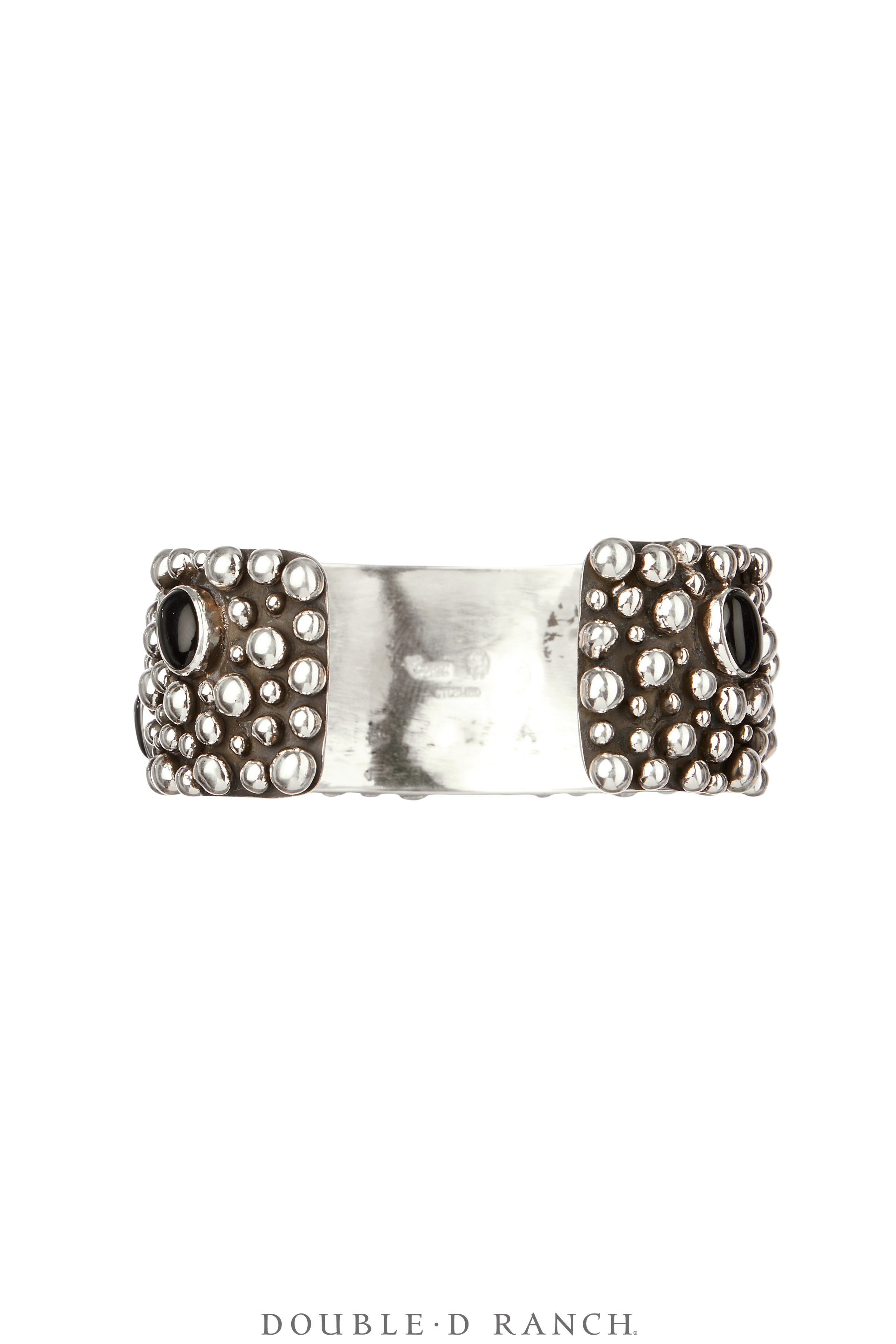 Who doesn’t love a cuff that can style up any outfit? Crafted by Raymond Coriz, this wide sterling silver band features a blackened bubble design with five large onyx stones dispersed throughout. The simplicity of the cuff gives it versatility to wear alone or added to your favorite stack.