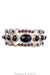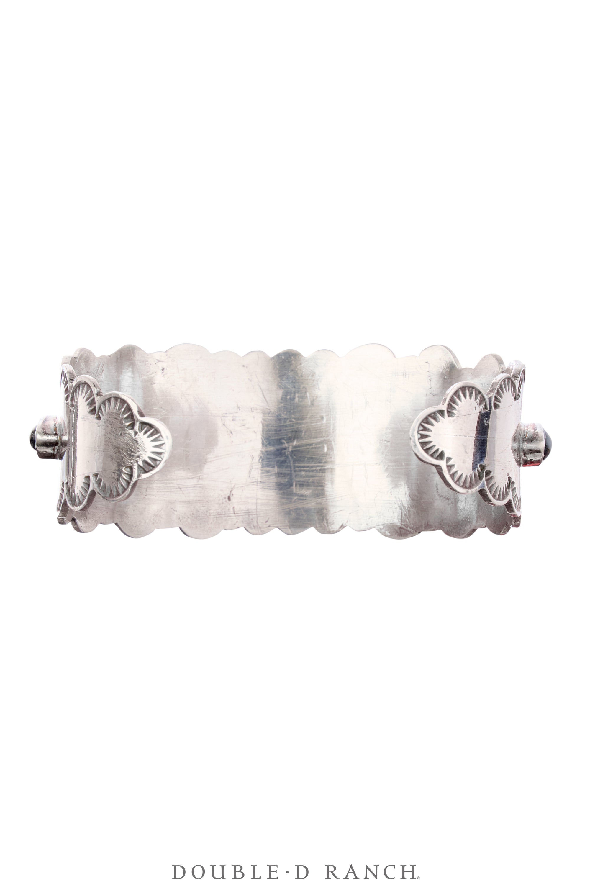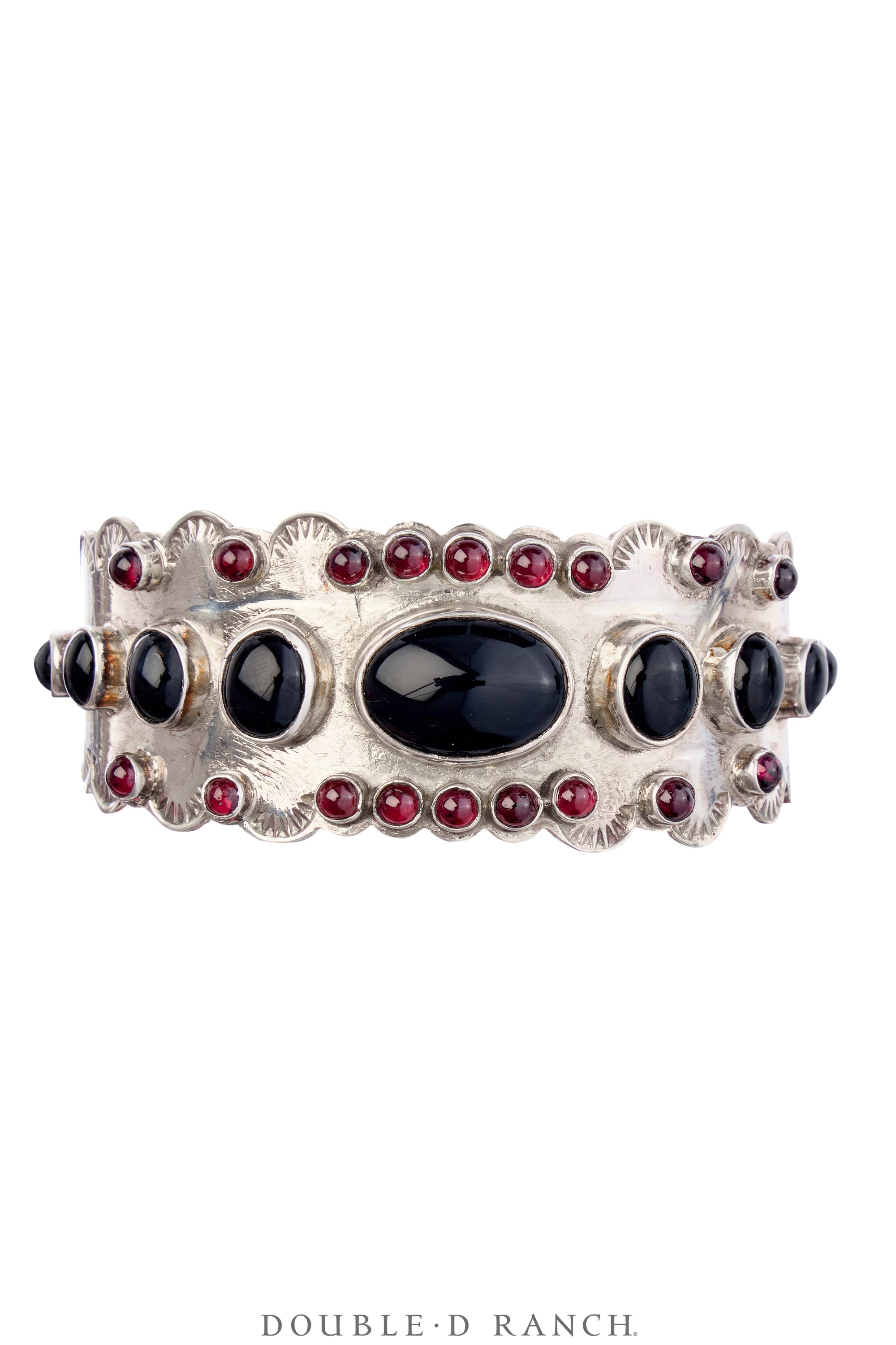 This unique contemporary creation is a gorgeous sterling silver scallop-edged cuff, beautifully adorned with black onyx cabochons and tiny snake-eye stones of red garnet. Sleek and elegant – and perfect for the chic Red Raider fan!