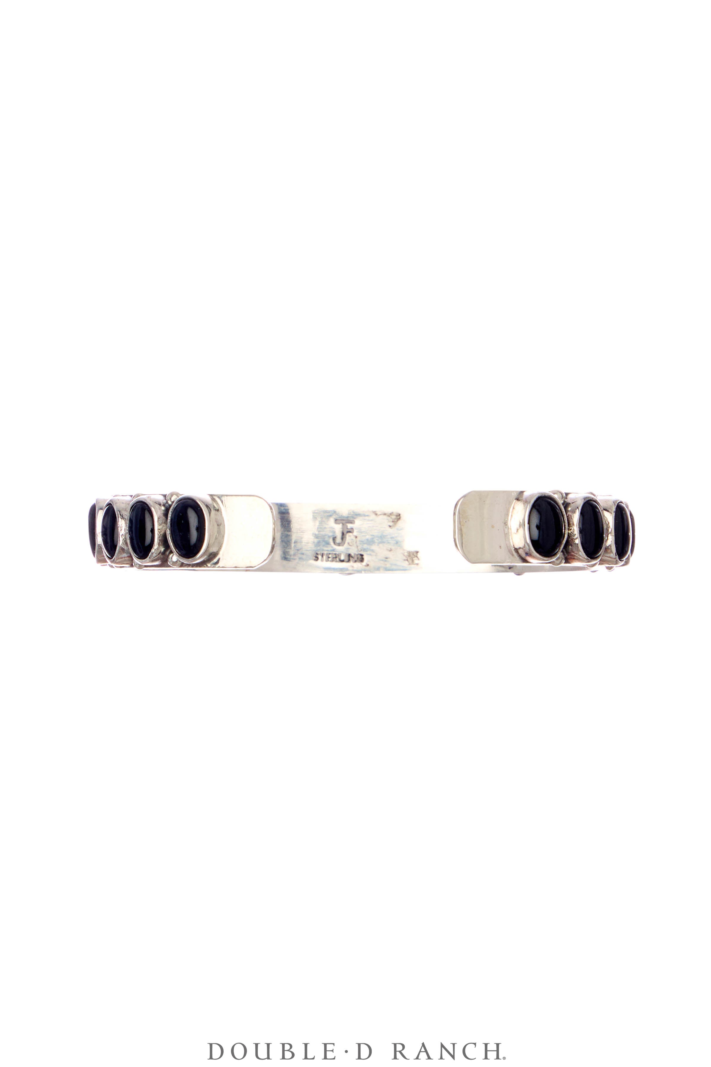 Crafted by renowned jewelry artisan Federico Jimenez, this beautiful cuff is a single row of oval cabochons of polished onyx set in simple sterling silver bezels. The straight-edged, slim silhouette is perfect for incorporating into a stack.