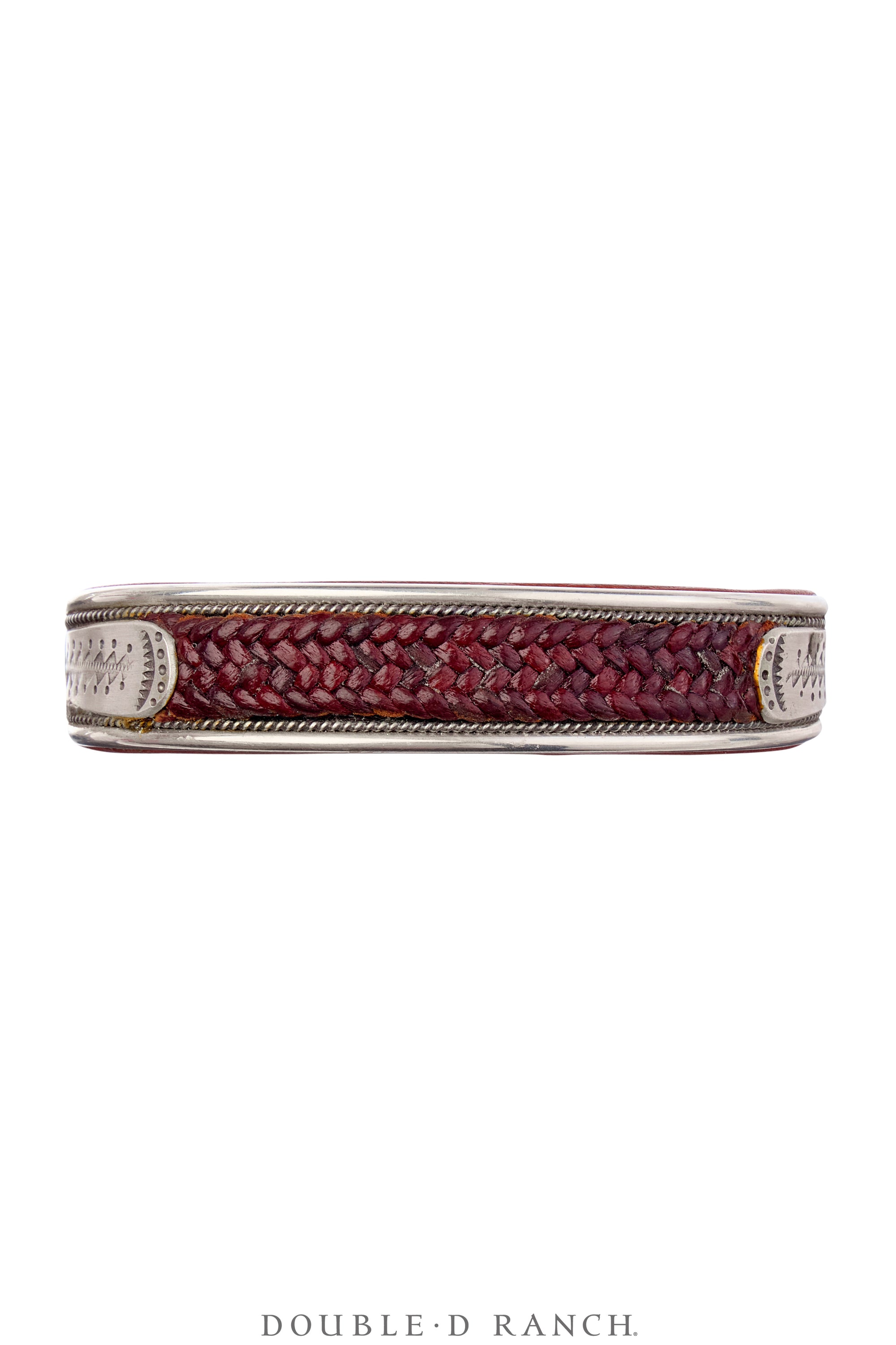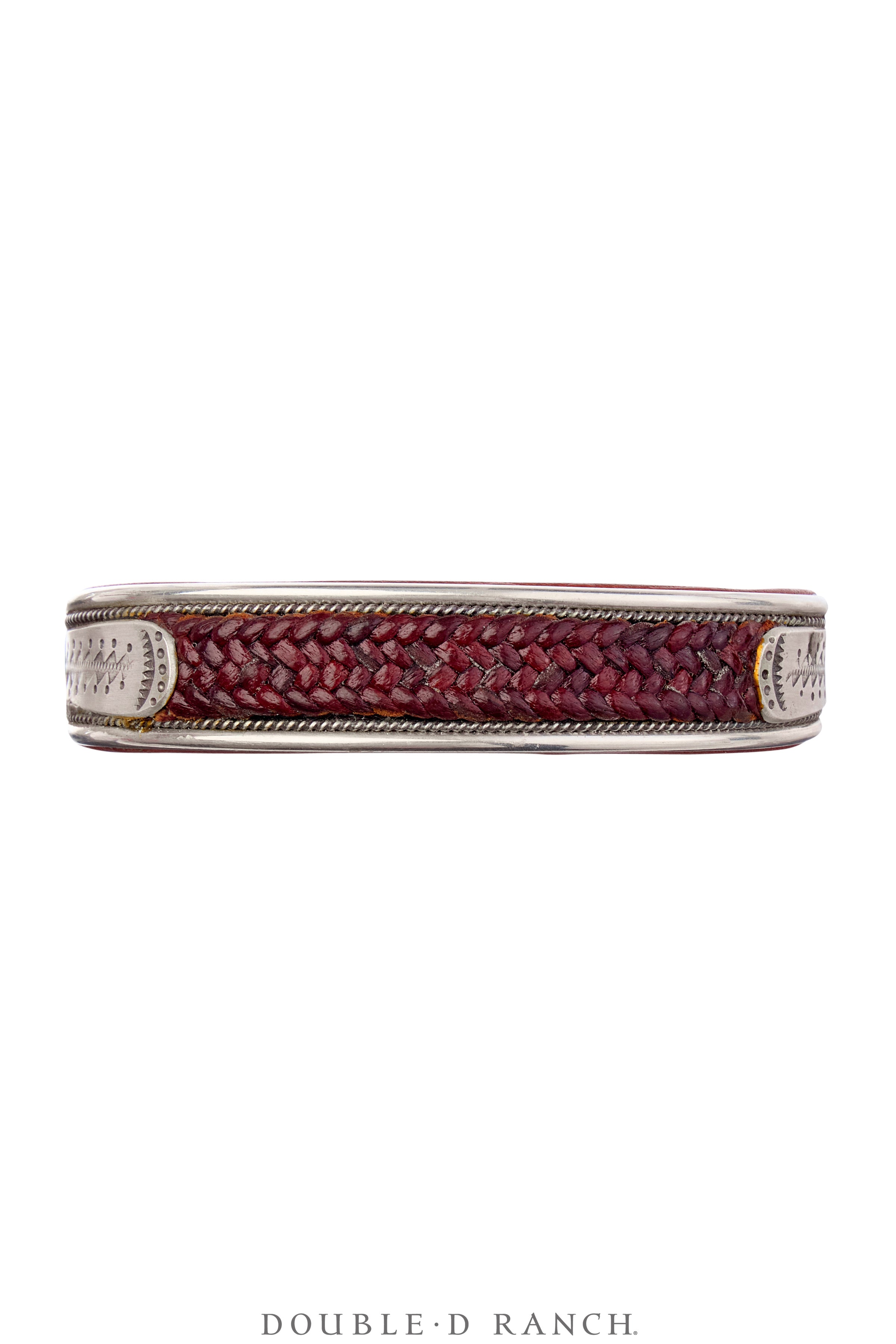 This contemporary creation is crafted by one of our favorite contemporary artisans, Charlie Favour, whose cuffs are often recognizable by their unique leather lining. This chic beauty is a colorful combination of twisted leather and turquoise arranged in cobblestone inlay and framed with sterling silver twist wire and bars. A beautiful piece of work for a man or a woman.