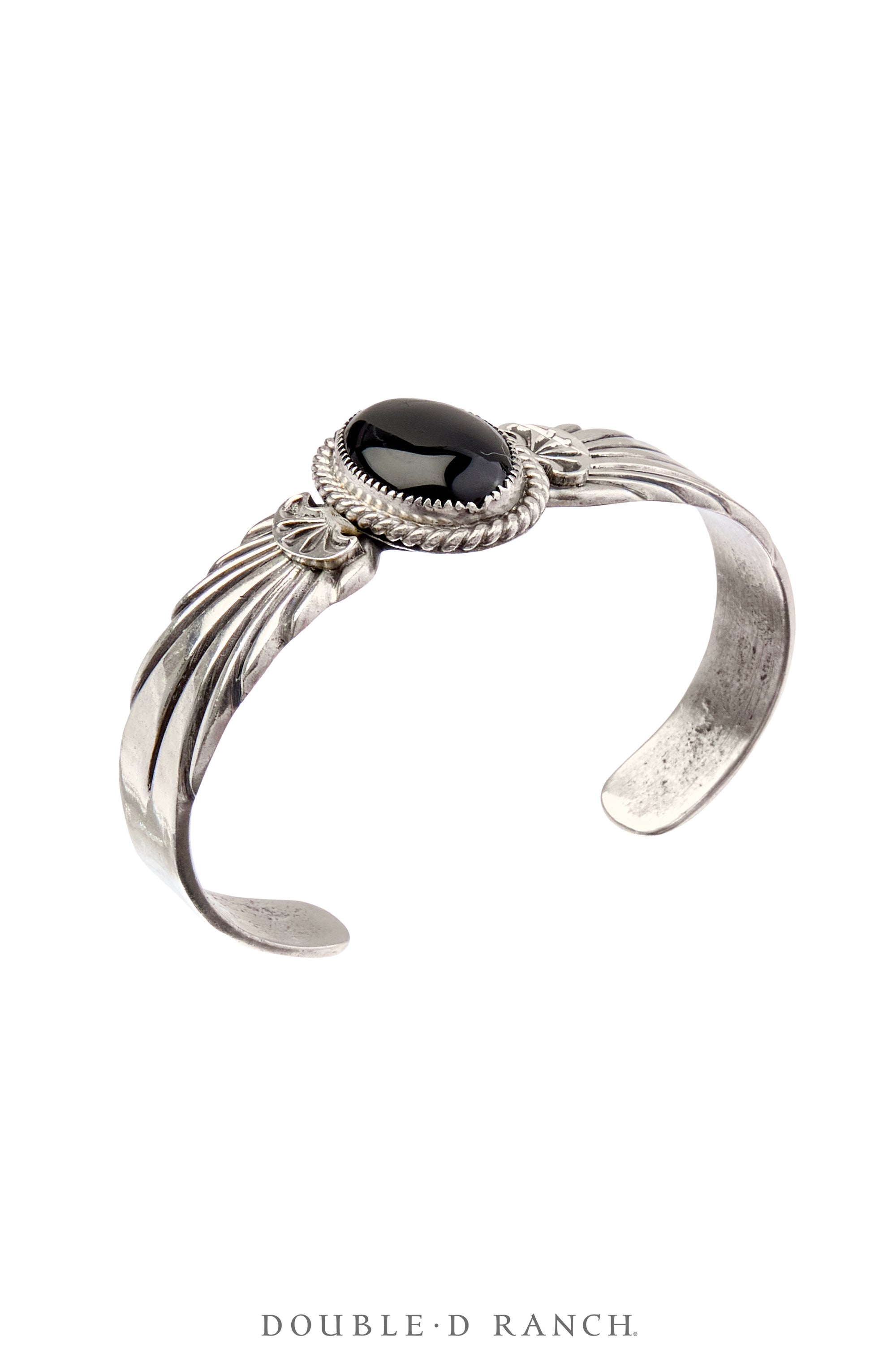 You can never go wrong with a gorgeous cuff that can stand out on its own. A single sleek round onyx stone is placed in a unique setting of sterling silver, while stampwork and repoussé add just the perfect amount of detail. Fun and simple, a cuff you will want to wear over and over!