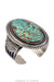 This stunning contemporary cuff was crafted by renowned Navajo artisan Leon Martinez and boasts an enormous specimen stone of Kingman Mine turquoise, elegantly framed in sterling silver rope, drop, and band border details, on an ornate stamped silver cuff. A truly remarkable work of art and an instant collector.