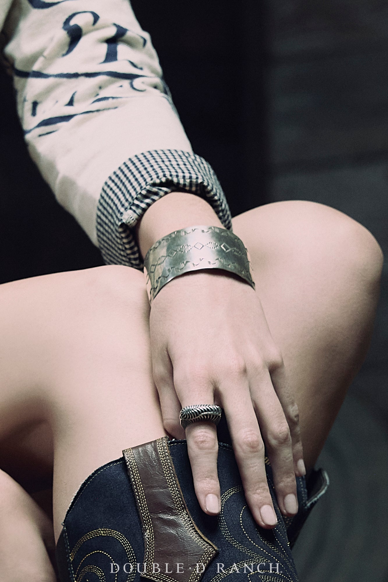 Make a statement in this sleek stamped silver cuff crafted by the talented Navajo artisan duo Iva and Gilbert Yazzi. It features intricate etchings of traditional southwestern geometric designs on a wide band of shiny sterling silver – a perfect piece on its own or to add some shine to your stack!