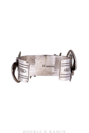 You’ve never seen anything quite like this eye-catching vintage cuff. The wide sterling silver band has a notched pattern along the borders, adorned with a lovely rectangle of green turquoise, flanked by the real focal point of the piece: a pair of detailed dimensional lizards. Not only does this collector’s cuff have impossible-to-ignore Southwestern style, it also has a remarkable provenance, acquired from the estate of Texas legend Kevin Williamson, the founder of Austin’s iconic Ranch 616 and creator of the now-popular Ranch Water cocktail. This is a once in a lifetime find.