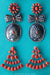 These gorgeous contemporary creations by one of our favorites, Federico Jimenez, are a classic fan chandelier dangle featuring tiers of tiny coral cabochons set in simple silver bezels and accented with tiny silver drop details. A gorgeous way to add a pop of color!