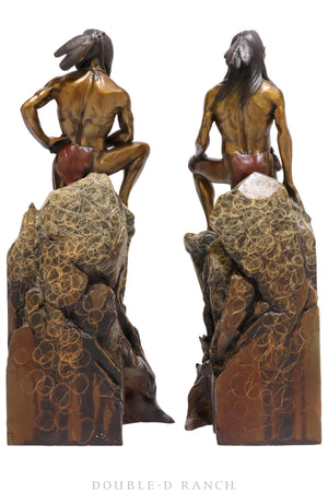 Art is always a good investment and these limited edition bronze bookends by Dan Garrett (American, b.1948) are titled “Man Made Suite” and this particular set is numbered 50/50. Dated 1995, each patinated bronze sculpture depicts a Native American male figure posed upon a rocky precipice.