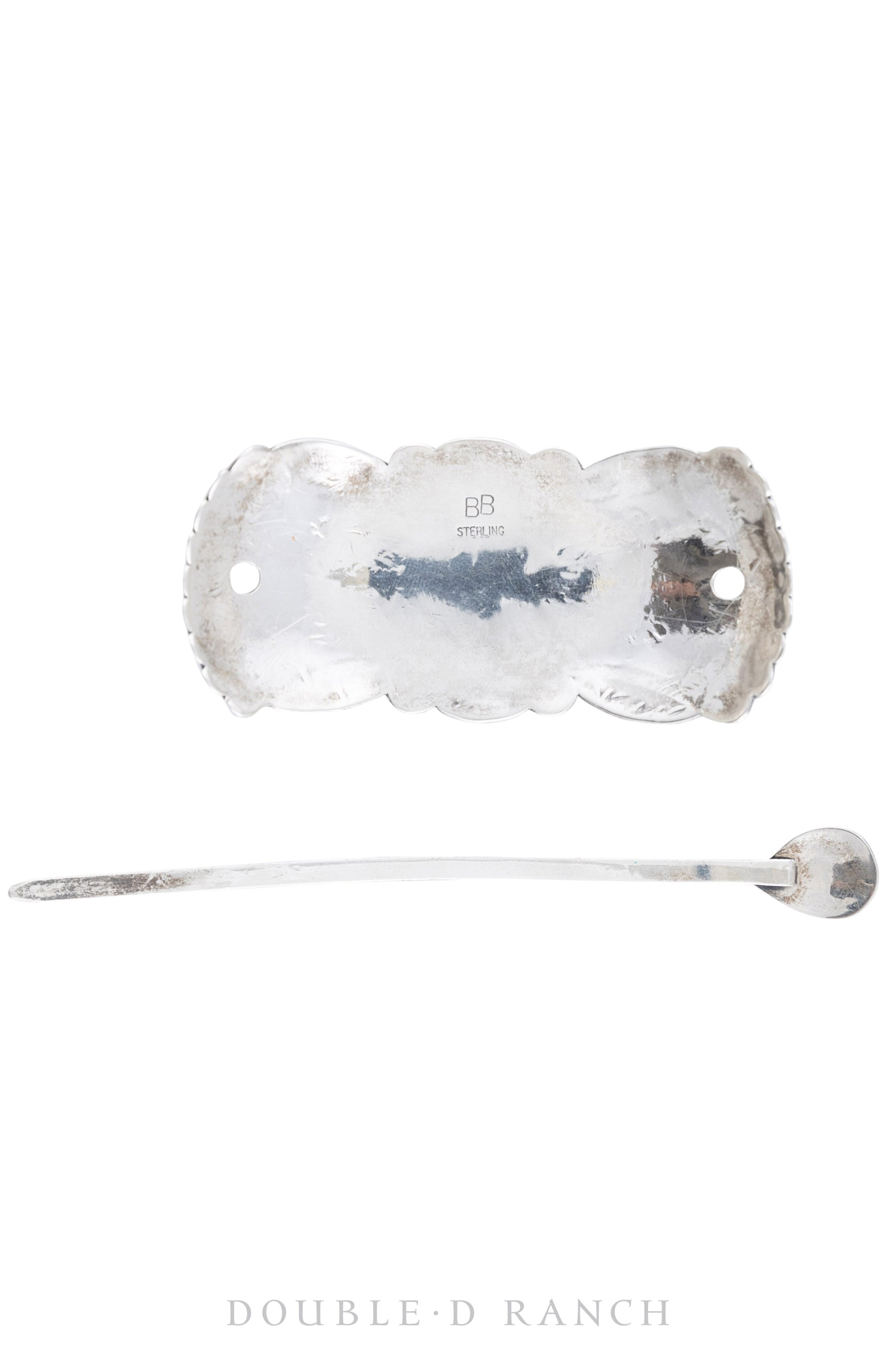 Every Double D gal knows that you’ve gotta seize every opportunity to accessorize – including your ponytail! This vintage beauty will pump up your hairstyle with ease. The sterling silver slide is embellished with sleek stamp work and a large oval cabochon of black onyx in the center, framed with sterling silver drops. It’s accompanied by a chic sterling silver slide to secure your chignon or style up your pony.
