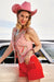 Talk about a head-turner! The hat’s heart-stealing hue is already an attention getter, but the underside of the brim is embellished with fuchsia crystals in a traditional toebug design. The color and crystals come together for a topper that’s too cute to turn down!