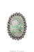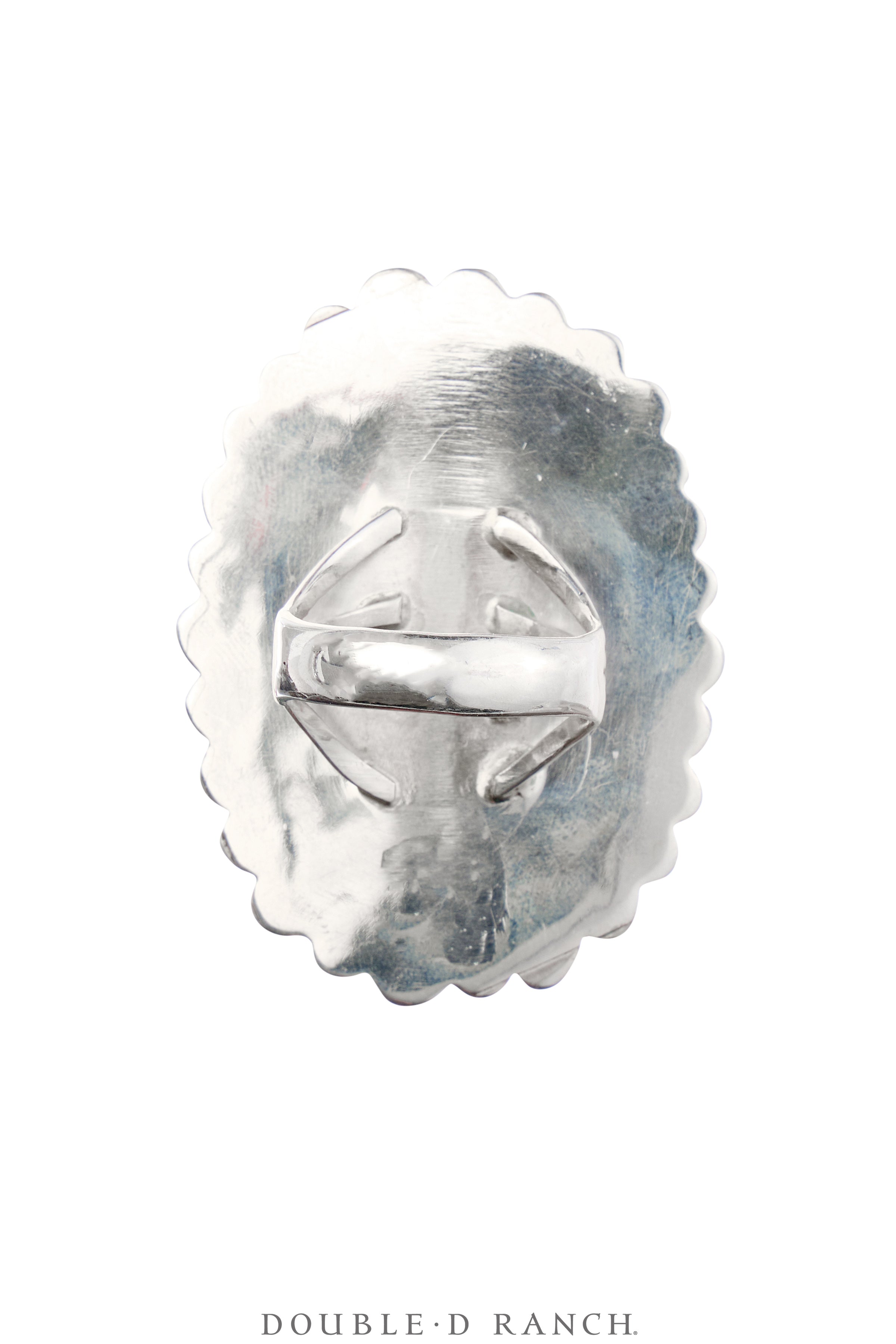 Wow oh wow, this ring is beyond gorgeous. This piece features a striking and uniquely matrix cabochon of light colored turquoise, set in a simple bezel, and framed with a border of sterling silver starburst drops. Everything about this ring makes a statement!