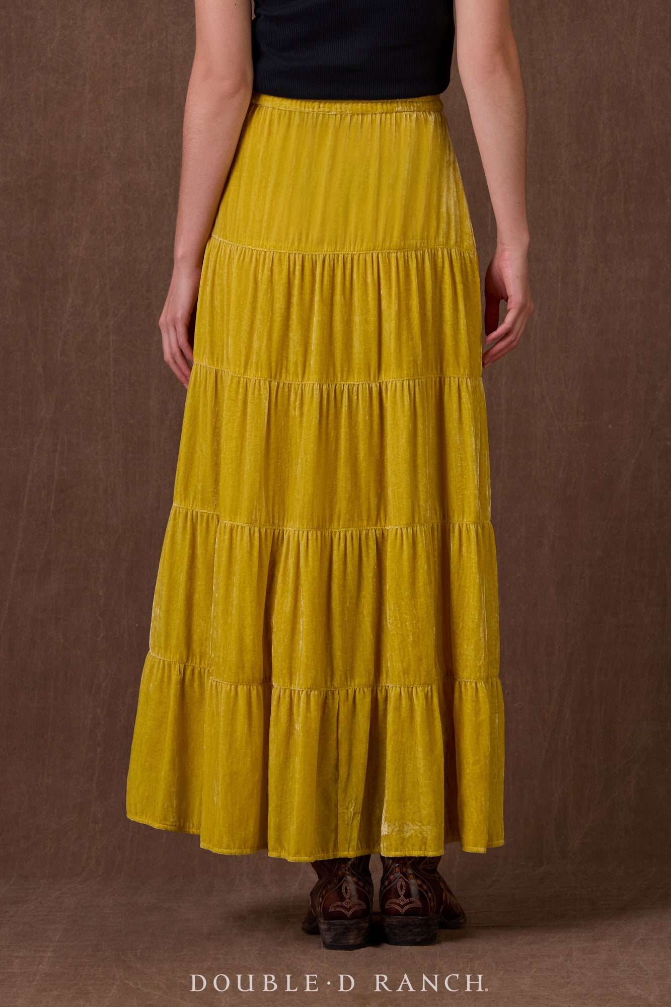 Everyone knows that a classic velvet broomskirt is a statement staple you’ll love for life. This little beauty is *the* skirt. We kept with the traditional silhouette, just a couple extra tiers which freshened it up a little, and we made it in some gorgeous super-saturated hues that lend an elevated elegance.