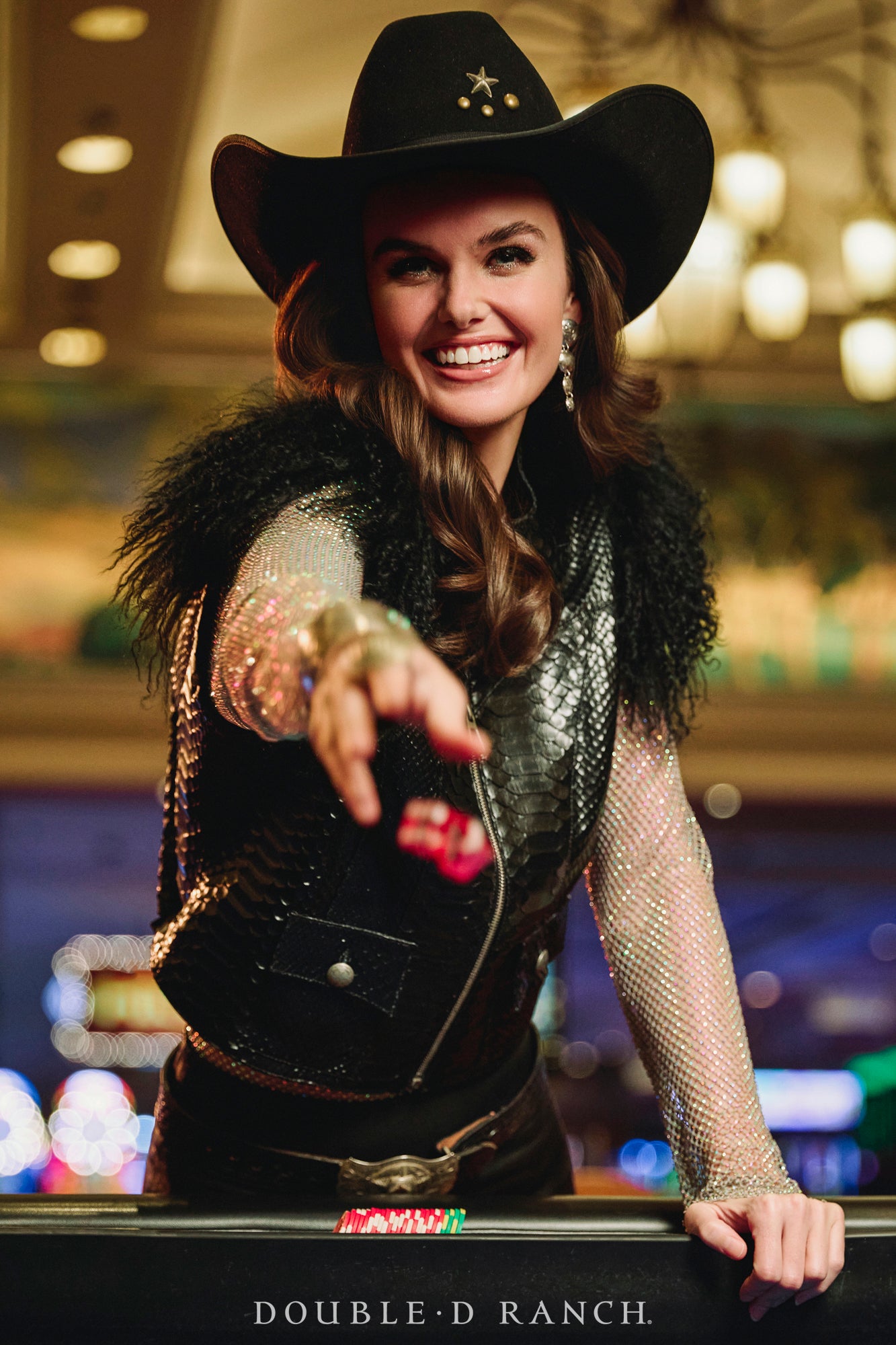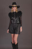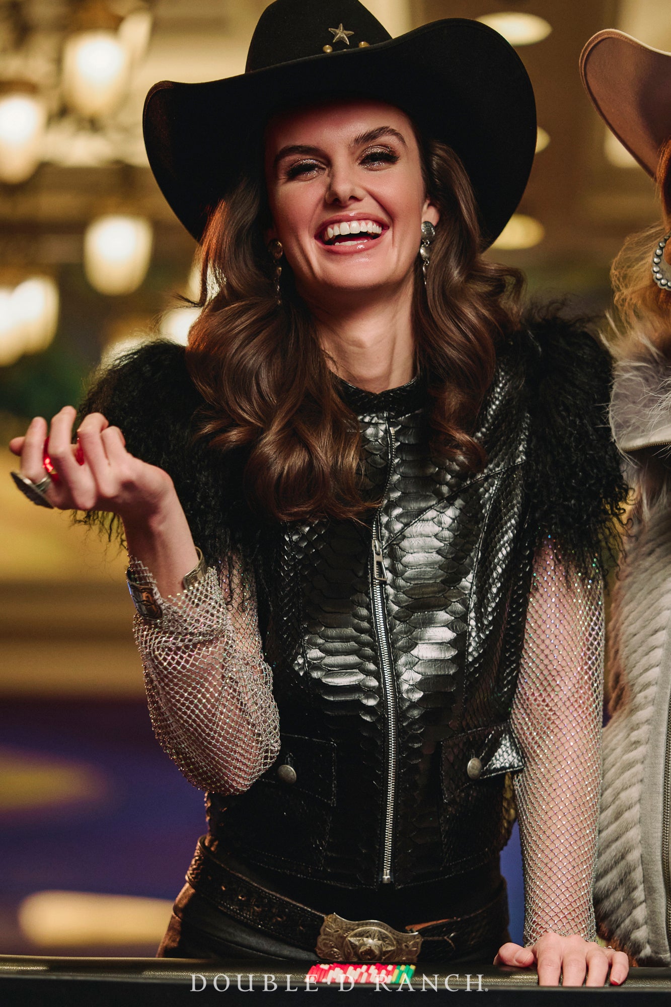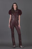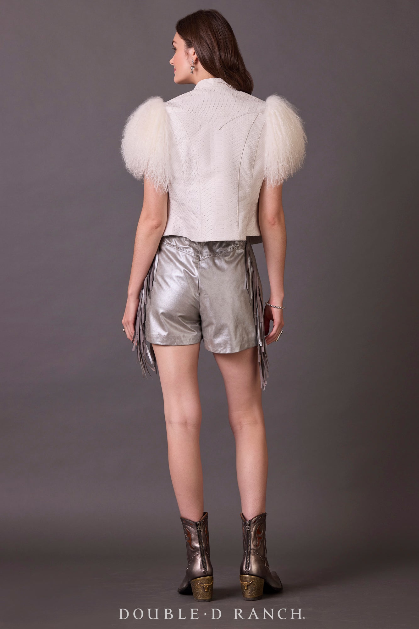One of the things that made playing dress up in Granny’s Wash House trunks such an adventure was the unique array of garments we’d find in there, and the outfits we could create by juxtaposing unexpected things. We kind of carried that vibe and mindset into creating this exquisite, envelope-pushing vest. The chic cropped silhouette is crafted in luxurious python leather with a military collar and flap-front pockets, but the real eye-catching element is the super-soft, voluminous Mongolian fur at the shoulders.